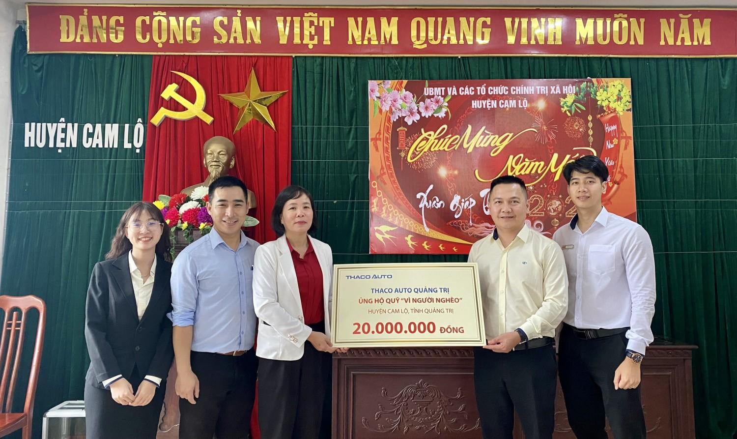 Công ty Cổ phần Tập đoàn Trường Hải ủng hộ Quỹ “Vì người nghèo” huyện Cam Lộ 20 triệu đồng