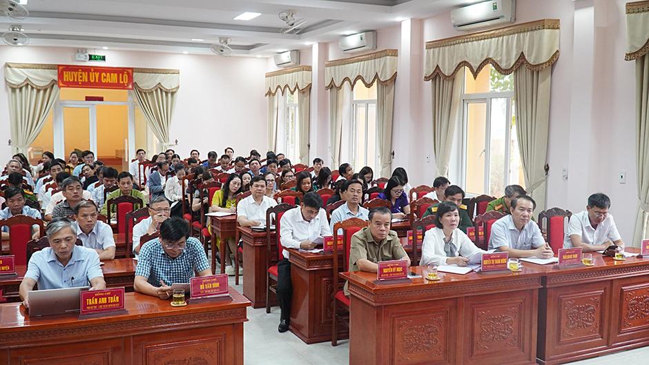 Dự hội nghị tại điểm cầu Huyện ủy Cam Lộ có đồng chí Đỗ Văn Bình, Bí thư Huyện ủy; đồng chí Nguyễn Kỹ Ngọc, Phó Bí thư Thường trực Huyện ủy, Chủ tịch HĐND huyện; đồng chí Trần Anh Tuấn, Chủ tịch UBND huyện; đồng chí Nguyễn Thị Thanh Hương, UVBTV, Trưởng Ban Dân vận, Chủ tịch UBMT huyện; các đồng chí trong Ban Thường vụ Huyện ủy, Thường trực HĐND, UBND, UBMT huyện; lãnh đạo các phòng, ban, ngành cấp huyện.