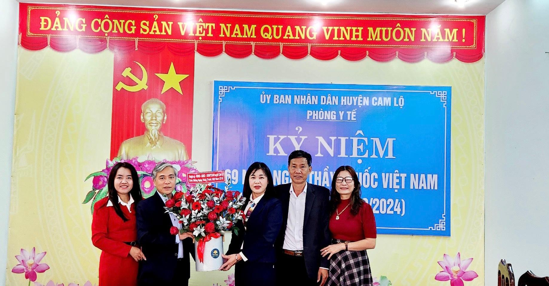 Lãnh đạo huyện Cam Lộ tặng hoa chúc mừng cán bộ Phòng Y tế huyện