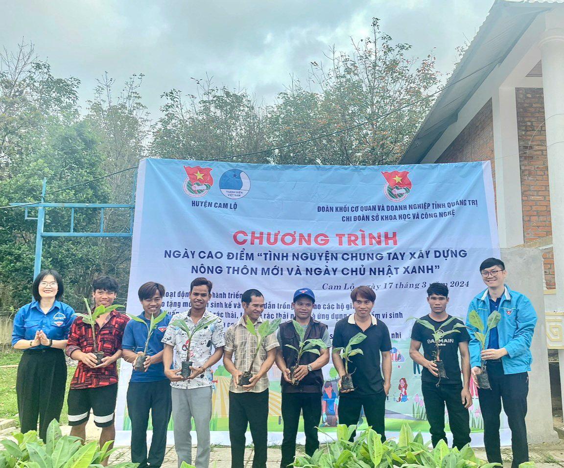 Sáng nay 17/3, Huyện đoàn - Hội Liên hiệp thanh niên Việt Nam huyện Cam Lộ phối hợp với Chi đoàn Sở Khoa học và Công nghệ tỉnh Quảng Trị tổ chức chương trình Ngày cao điểm tình nguyện chung tay xây dựng nông thôn mới và Chủ nhật xanh tại Bản Chùa, xã Cam Tuyền.