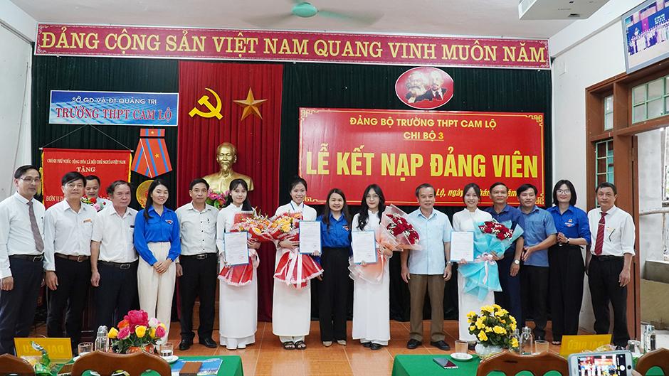 Chiều qua 26/3, Chi bộ 2 và Chi bộ 3, Đảng bộ Trường THPT Cam Lộ đã tổ chức kết nạp thêm 4 đảng viên tuổi 18 là học sinh có nhiều thành tích xuất sắc trong học tập, rèn luyện, có nhiều đóng góp tích cực cho công tác đoàn và phong trào thanh niên nhà trường. Đến dự có đồng chí Trần Thị Thu, Bí thư Tỉnh đoàn Quảng Trị; đồng chí Nguyễn Ký Ngọc, Phó Bí thư Thường trực Huyện ủy, Chủ tịch HĐND huyện; đồng chí Nguyễn Văn Ân, UVTV, Trưởng Ban Tuyên giáo Huyện ủy.