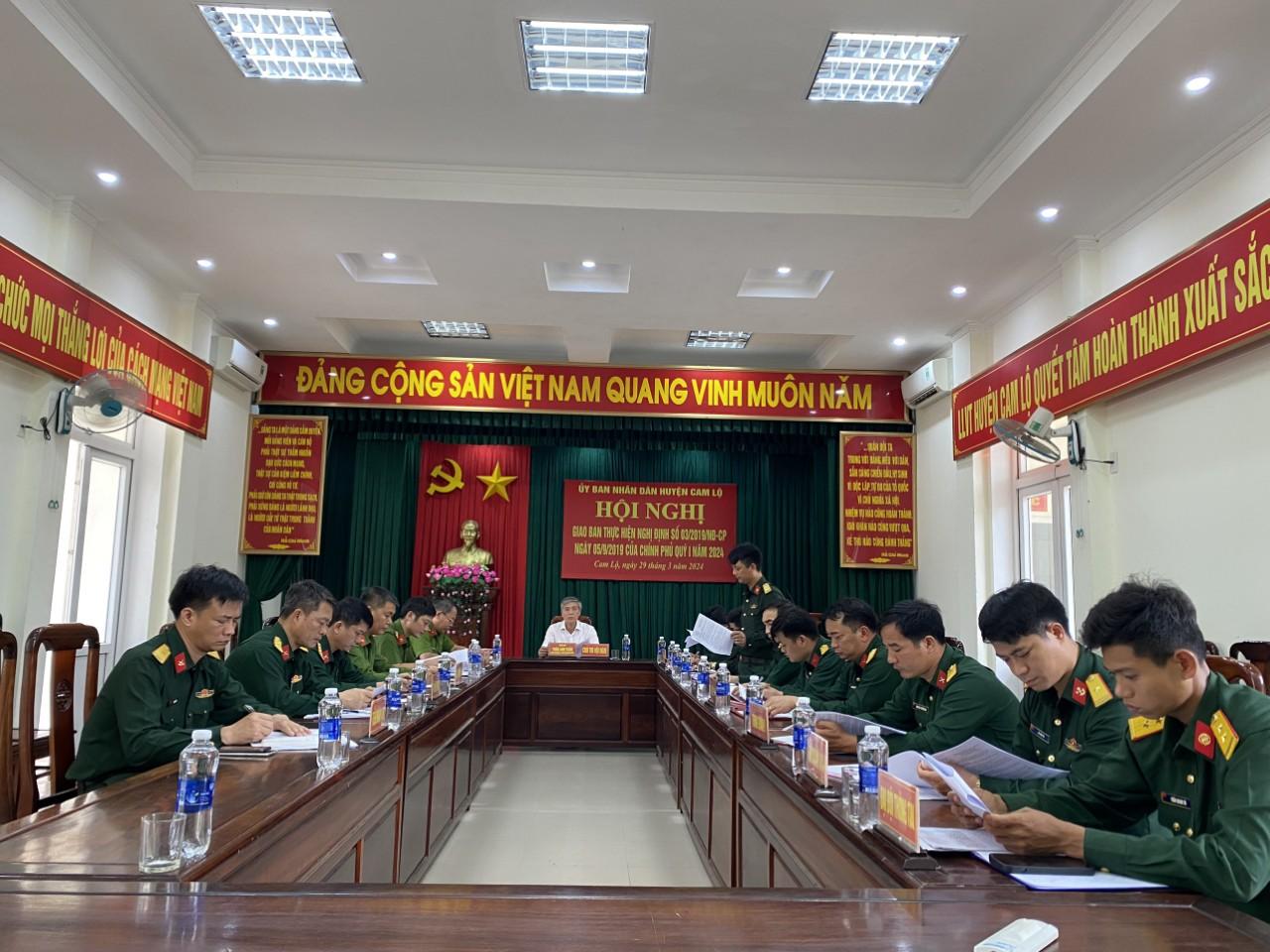 Chiều ngày 29/3/2024, UBND huyện Cam Lộ đã tổ chức hội nghị giao ban thực hiện Nghị định số 03/2019/NĐ-CP ngày 05/9/2019 của Chính Phủ về công tác phối hợp giữa công an -quân sự quý I và phương hướng, nhiệm vụ quý II năm 2024. Đồng chí Trần Anh Tuấn, Chủ tịch UBND huyện chủ trì hội nghị.