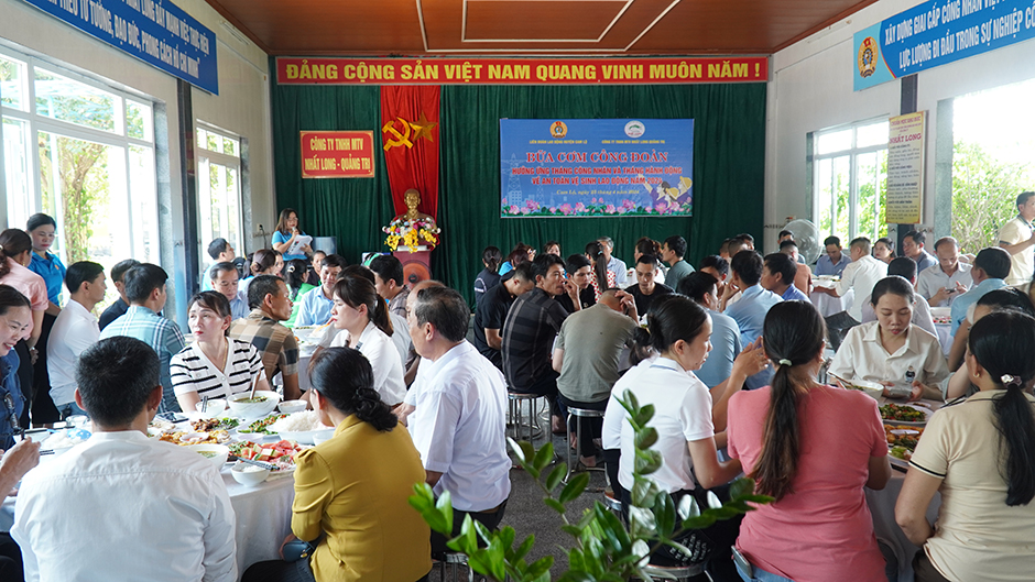 Đông đảo công nhân, lao động các doanh nghiệp tham gia “Bữa cơm Công đoàn” tại Công ty TNHH MTV Nhất Lonh Quảng Trị