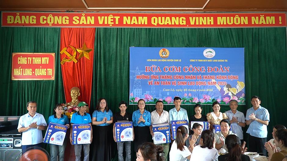 Tại chương trình, LĐLĐ huyện Cam Lộ và Công ty TNHH MTV Nhất Long Quảng Trị đã hỗ trợ 100 suất ăn trưa, mỗi suất trị giá 50.000đ cho 100 công nhân lao động của một số doanh nghiệp trên địa bàn.