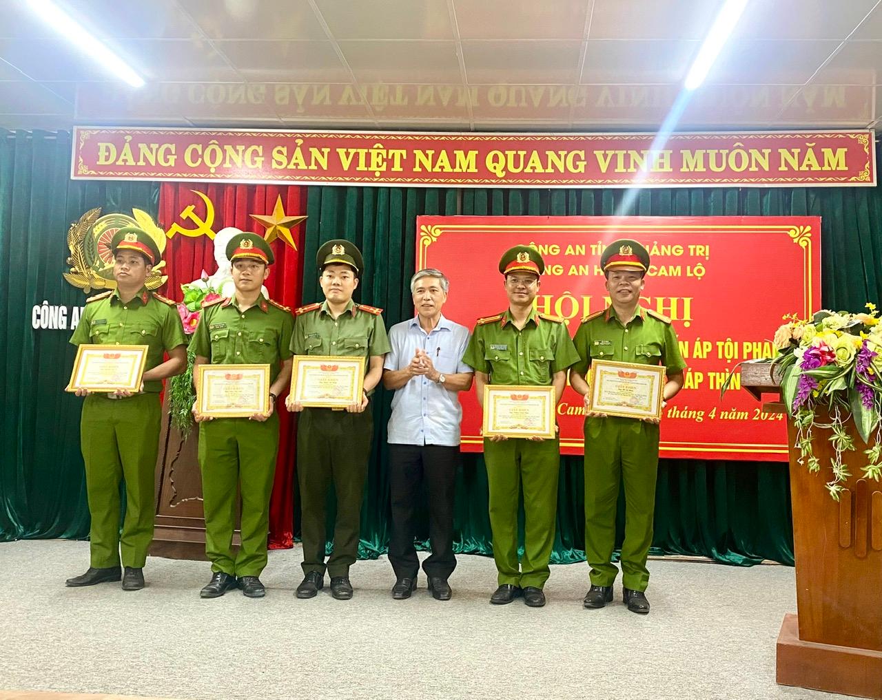 Dịp này, UBND huyện Cam Lộ đã tặng giấy khen cho 2 tập thể và 11 cá nhân có thành tích xuất sắc trong thực hiện đợt cao điểm tấn công trấn áp tội phạm, đảm bảo an ninh trật tự trước, trong và sau Tết Giáp Thìn năm 2024.