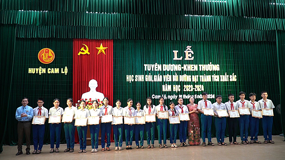 Sáng 16/5/2024, UBND huyện Cam Lộ tổ chức tuyên dương, khen thưởng học sinh giỏi và giáo viên bồi dưỡng đạt có thành tích xuất sắc trong năm học 2023-2024.