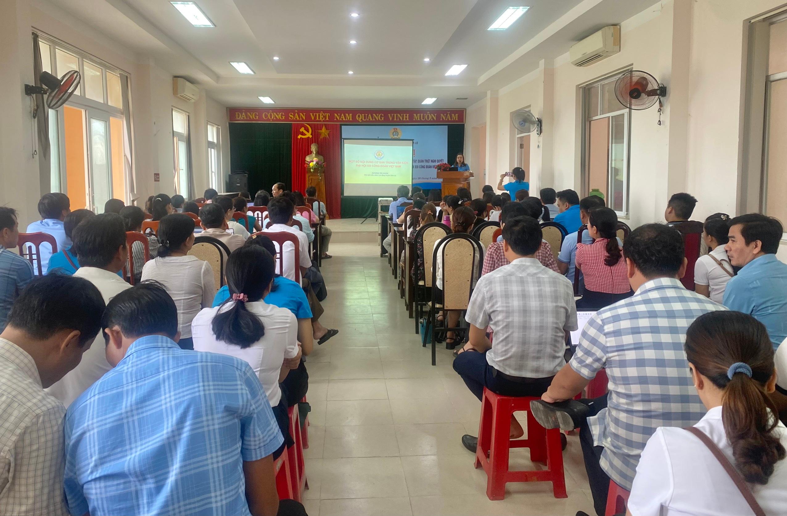 Ngày 28/05/2024, Liên đoàn lao động huyện Cam Lộ tổ chức tập huấn nghiệp vụ công tác tài chính và triển khai học tập, quán triệt Nghị quyết Đại hội XIII Công đoàn tỉnh Quảng Trị, Nghị quyết Đại hội XIII công đoàn Việt Nam nhiệm kỳ 2023-2028 cho các đồng chí là Ủy viên BCH, UBKT LĐLĐ huyện; Chủ tịch, kế toán các công đoàn cơ sở trên địa bàn.