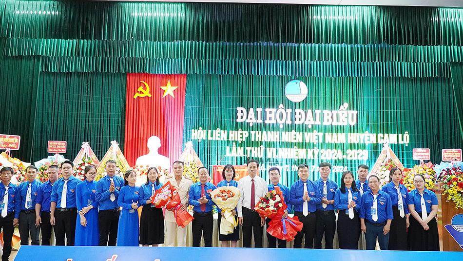 Lãnh đạo Hội LHTN tỉnh và huyện Cam Lộ tặng hoa chúc mừng các Ủy viên Ủy ban Hội LHTN huyện nhiệm kỳ 2024-2029