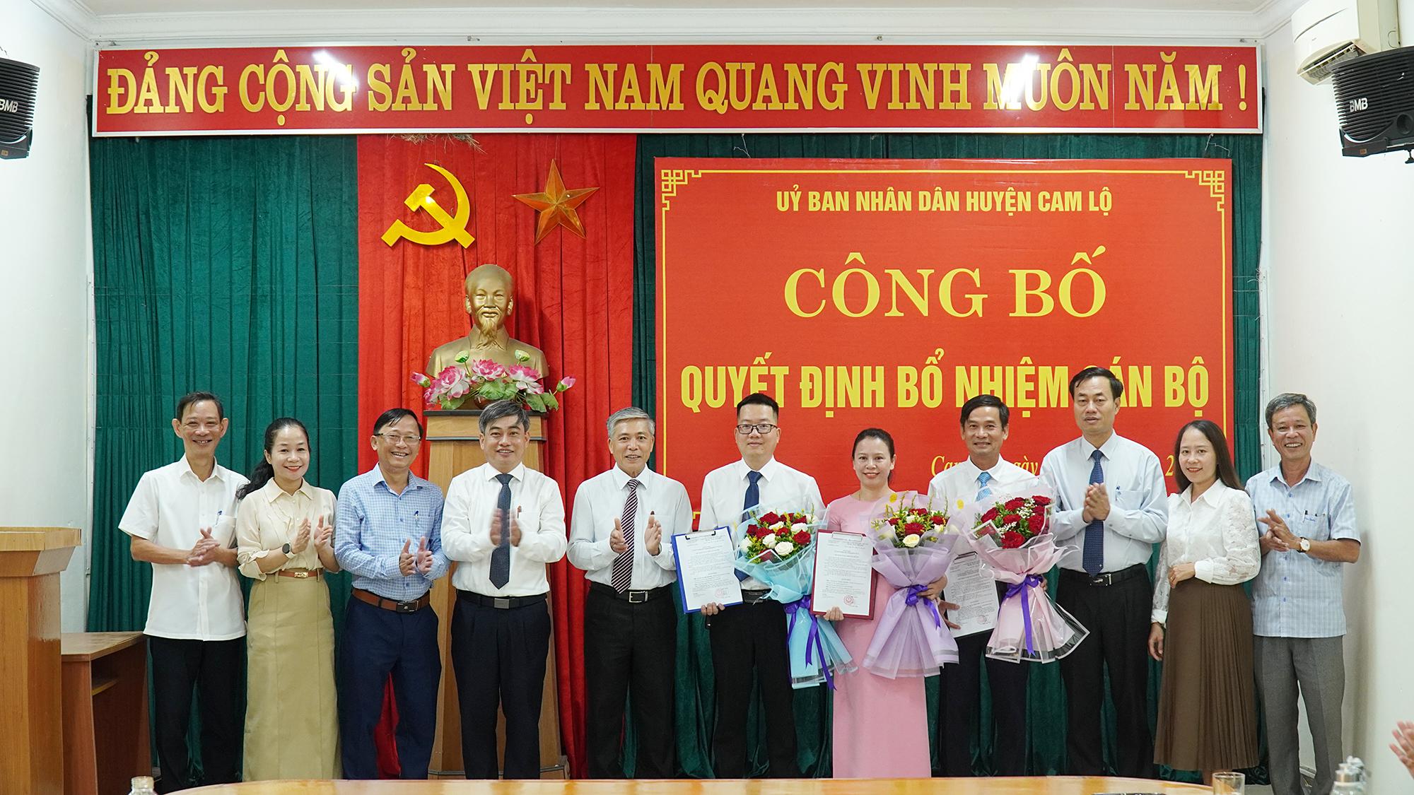 Trao quyết định, tặng hoa chúc mừng và phát biểu giao nhiệm vụ, đồng chí Trần Anh Tuấn, Phó Bí thư Huyện ủy, Chủ tịch UBND huyện chúc mừng các đồng chí Nguyễn Thị Chiến, Ngô Thanh Hòa, Nguyễn Thanh Tuấn được UBND huyện tin tưởng giao giữ chức vụ lãnh đạo cơ quan chuyên môn, đơn vị sự nghiệp huyện. Chủ tịch UBND huyện nhấn mạnh, đây là bước kiện toàn đội ngũ lãnh đạo chủ chốt của các cơ quan, đơn vị nhằm thực hiện tốt chức năng và nhiệm vụ được giao, đồng thời đề nghị các đồng chí được bổ nhiệm lần này tiếp tục nỗ lực, học tập nâng cao trình độ chuyên môn, nghiệp vụ cũng như năng lực quản lý để hoàn thành tốt mọi nhiệm vụ trên cương vị công tác mới, góp phần giúp huyện Cam Lộ ngày càng văn minh, phát triển.