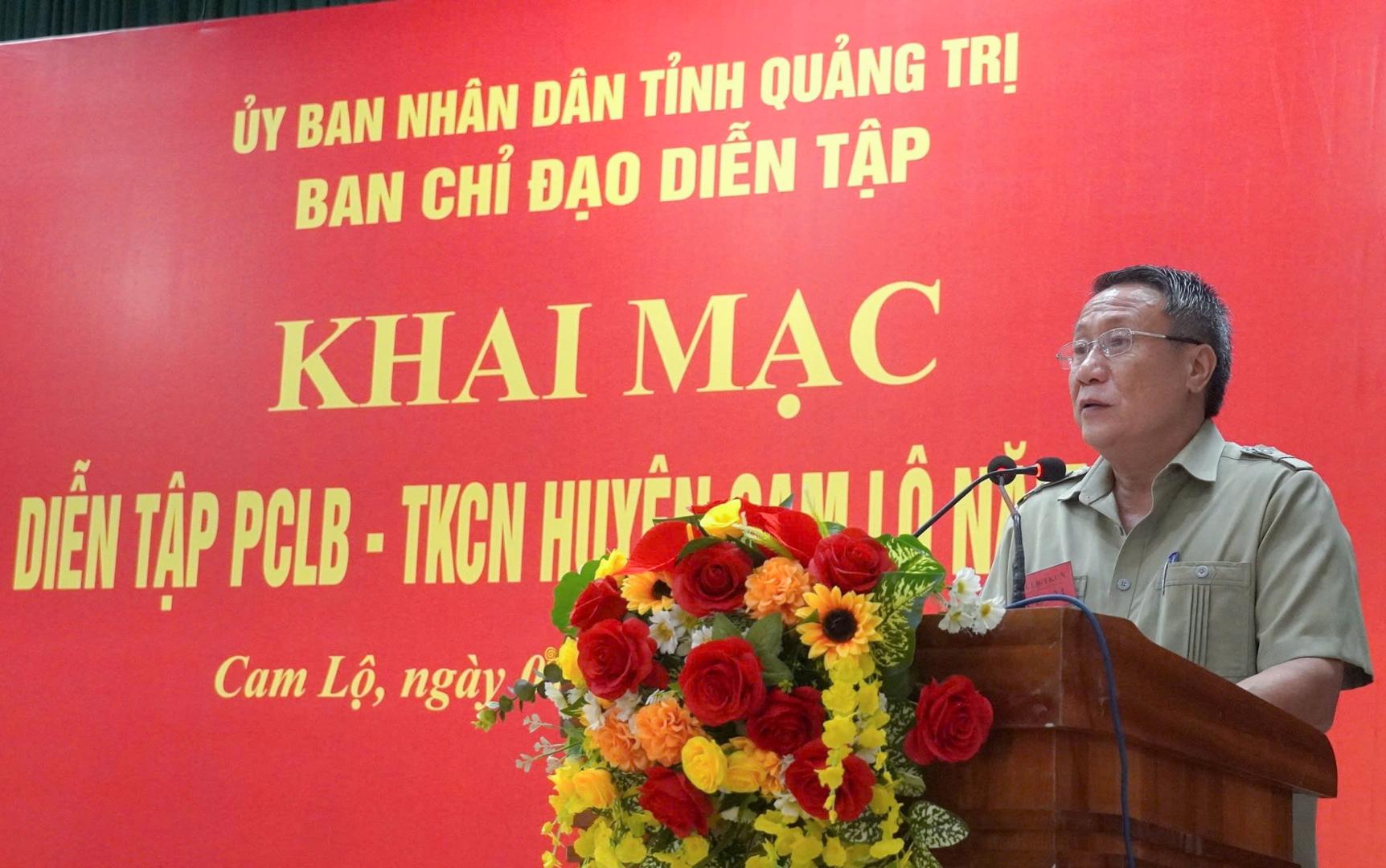 Sáng 1/10/2024, BCĐ diễn tập tỉnh Quảng Trị tổ chức khai mạc diễn tập PCLB-TKCN huyện Cam Lộ năm 2024. Dự khai mạc có đồng chí Hà Sỹ Đồng, UVBTVTU, Phó Chủ tịch Thường trực UBND tỉnh, Trưởng BCĐ diễn tập; Đại tá Nguyễn Hữu Đàn, UVBTVTU, Chỉ huy trưởng Bộ CHQS tỉnh, Phó Ban trực BCĐ diễn tập; các đồng chí trong BTVTU, lãnh đạo các sở, ngành liên quan và huyện Cam Lộ.