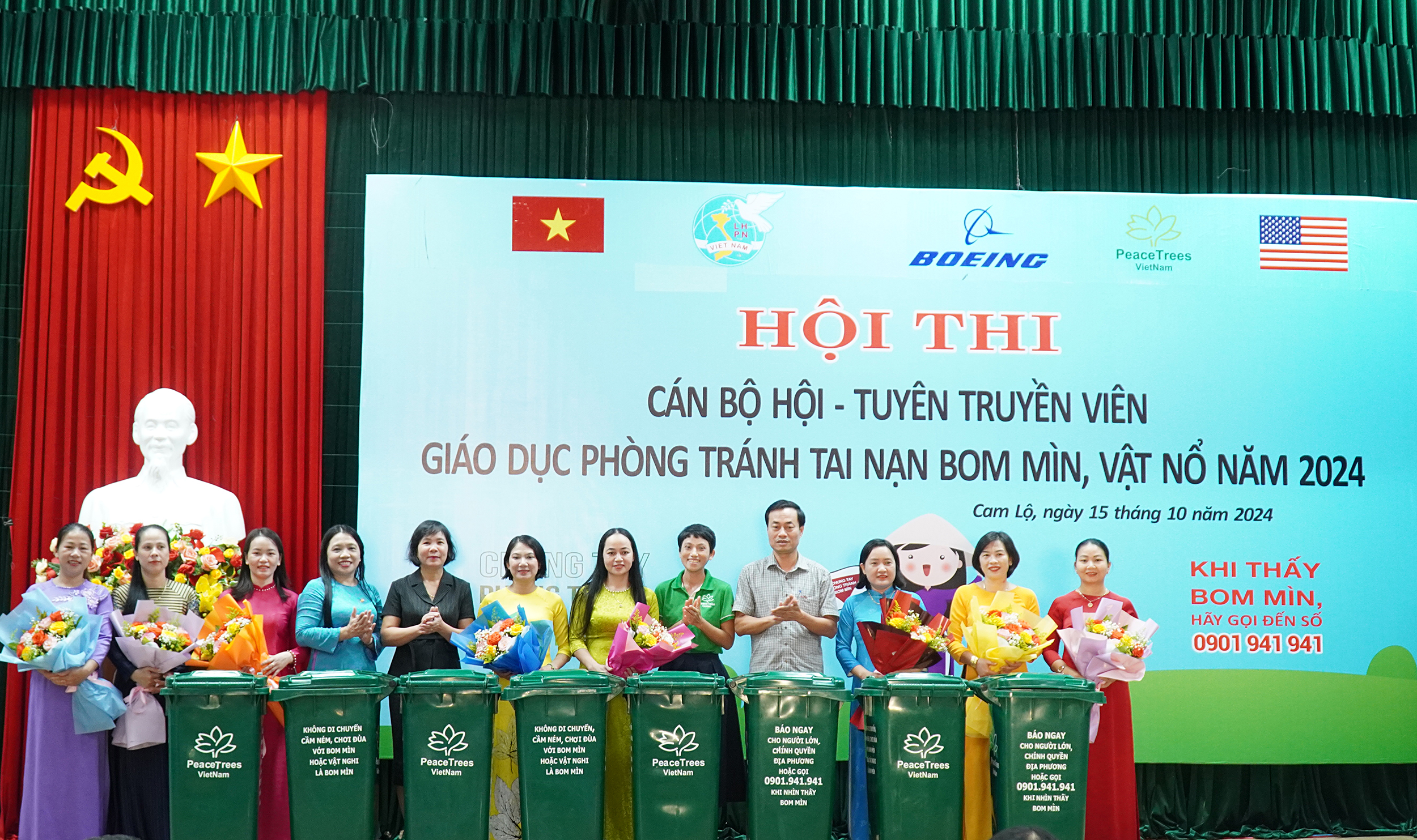 Dịp này, Peace Trees Vietnam đã tặng 80 thùng đựng rác cho 80 chi hội phụ nữ trong toàn huyện.