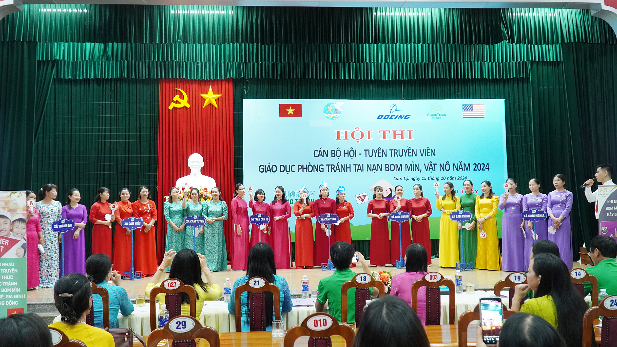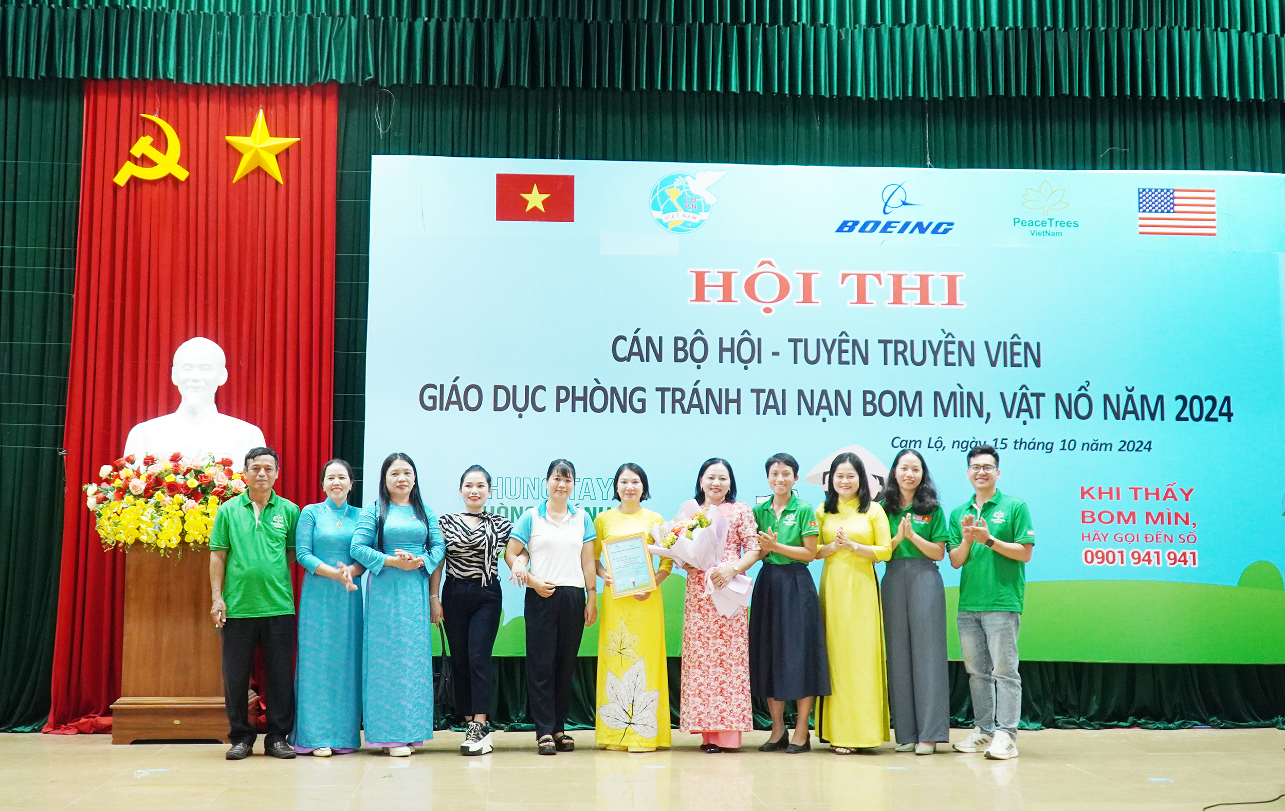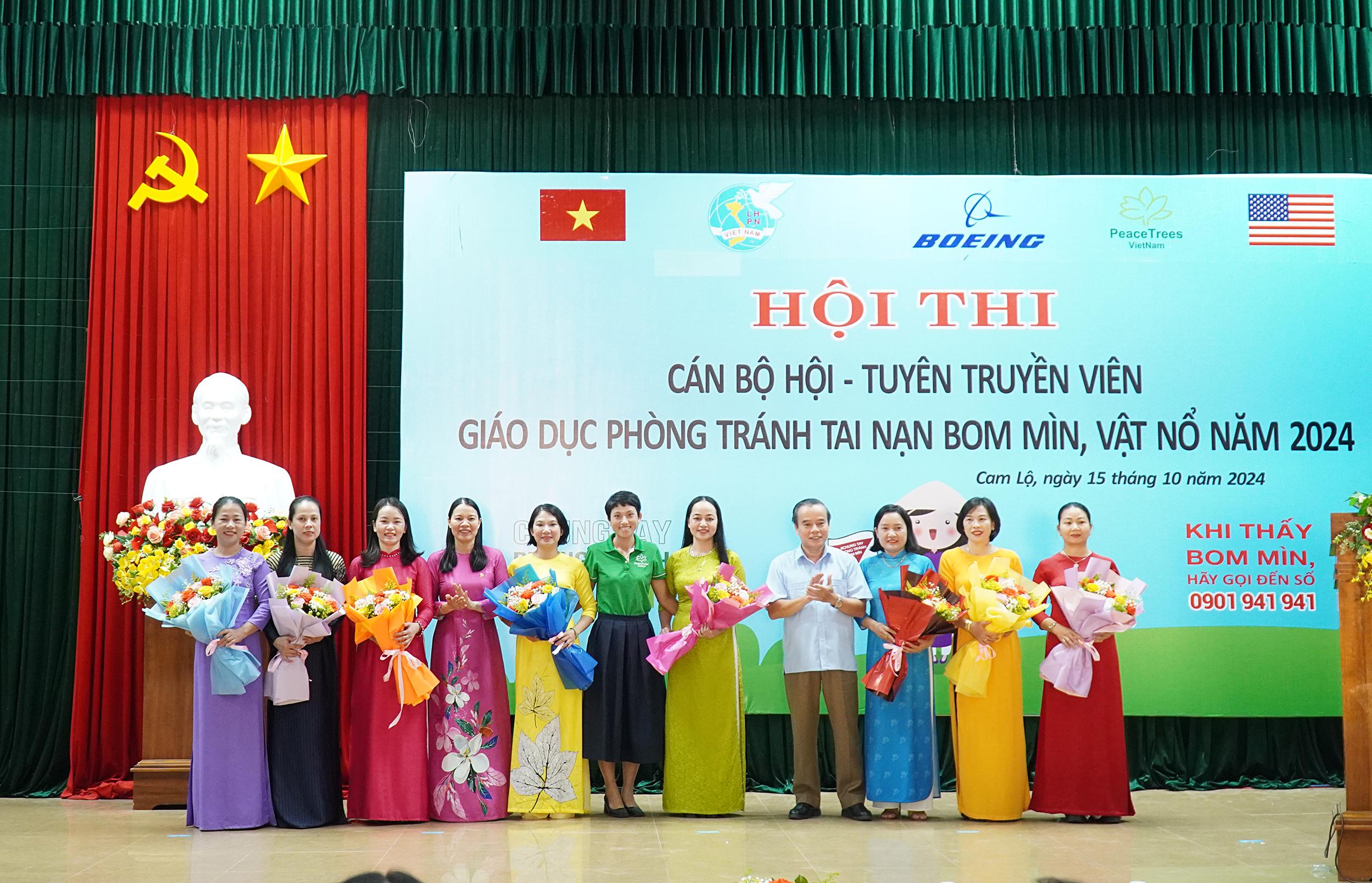 Hôm nay 15/10, Hội LHPN huyện Cam Lộ phối hợp với Dự án Cây hoà bình Việt Nam (Peace Trees Vietnam) tổ chức Hội thi Cán bộ Hội - Tuyên truyền viên giáo dục phòng tránh tại nạn bom mìn, vật nổ" năm 2024. Đến dự có đồng chí Nguyễn Ký Ngọc, Phó Bí thư Thường trực Huyện ủy, Chủ tịch HĐND huyện; đồng chí Nguyễn Thị Thanh Hương, UVBTV, Trưởng Ban Dân vận, Chủ tịch UBMTTQVN huyện; đồng chí Nguyễn Thanh Bắc, Phó Chủ tịch UBND huyện, Trưởng Ban Vì sự tiến bộ phụ nữ huyện.