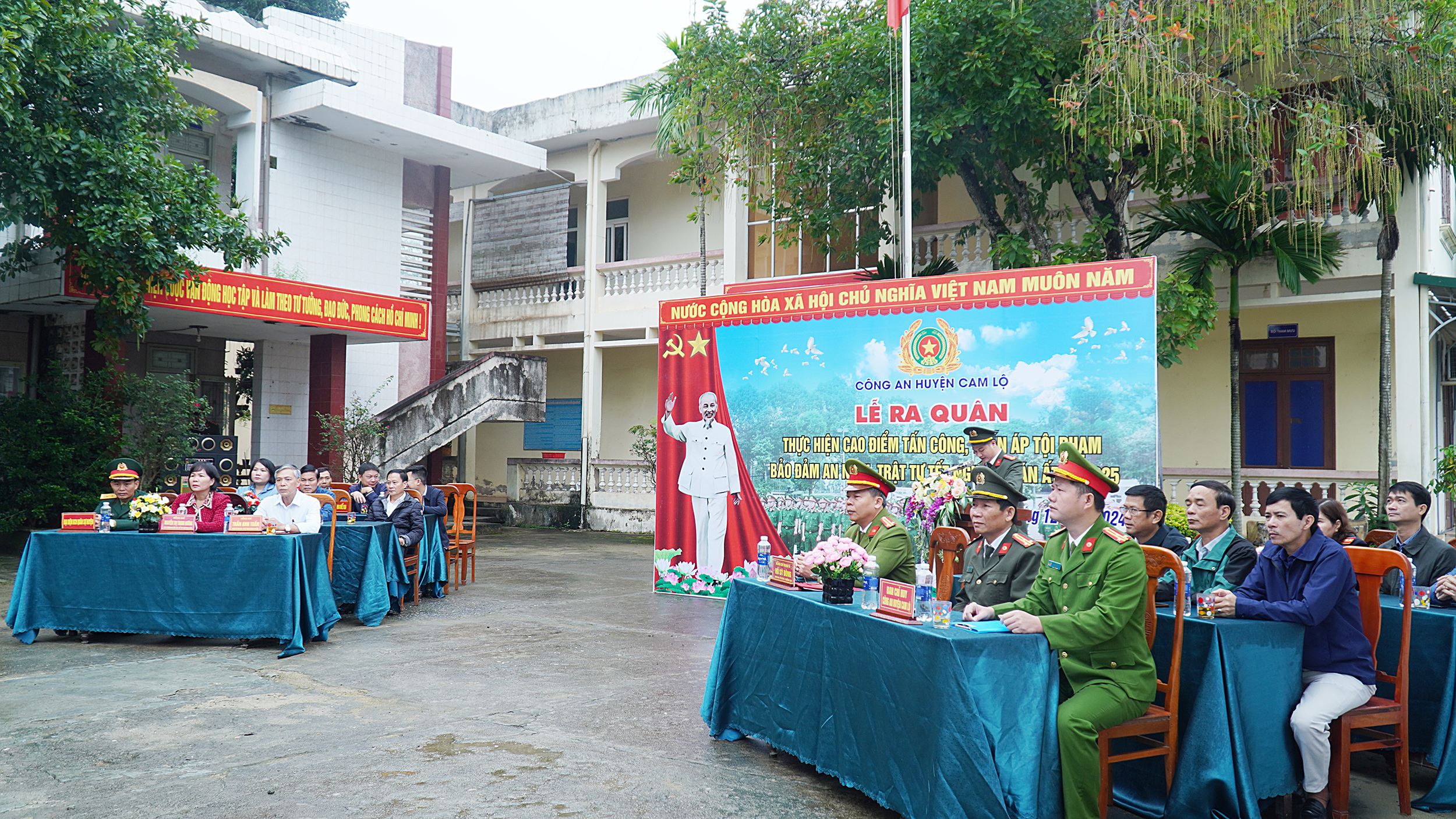 Sáng nay 10/12, Công an huyện Cam Lộ đã phát động mở đợt cao điểm tấn công, trấn áp tội phạm, đảm bảo an ninh trật tự Tết nguyên đán Ất Tỵ 2025. Dự lễ ra quân có đồng chí Trần Anh Tuấn, Chủ tịch UBND huyện; đồng chí Nguyễn Thị Thanh Hương, UVBTV, Trưởng Ban Dân vận, Chủ tịch UBMT huyện; Trung tá Hồ Sỹ Đông, UVBTV, Trưởng Công an huyện.