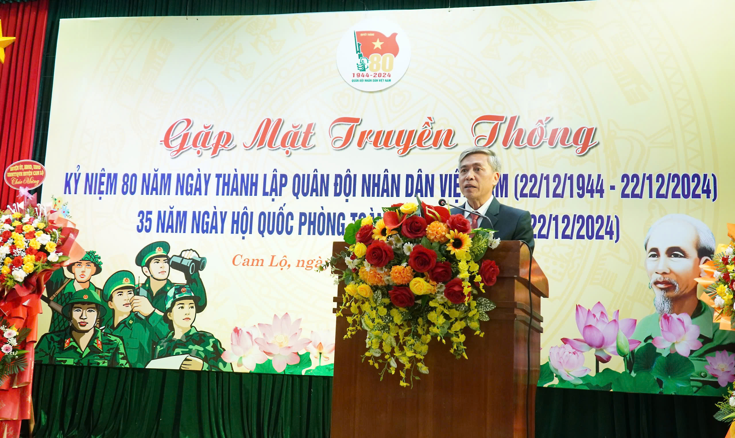 Chiều qua 16/12, huyện Cam Lộ đã tổ chức gặp mặt truyền thống kỷ niệm 80 năm ngày thành lập QĐND Việt Nam (22/12/1944-22/12/2024) và 35 năm ngày Hội quốc phòng toàn dân (22/12/1989-22/12/2024). Đến dự có đồng chí Đào Mạnh Hùng, UVBTV Tỉnh ủy, Chủ tịch Ủy ban MTTQ Việt Nam tỉnh.