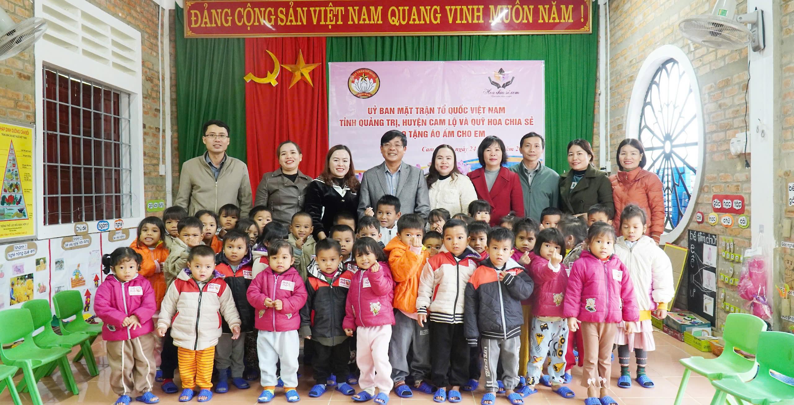 Được biết trong đợt này, Quỹ Hoa Chia Sẻ đã gửi tặng 1.000 áo ấm cho các cháu đang học mầm non có hoàn cảnh khó khăn trên địa bàn huyện Cam Lộ.