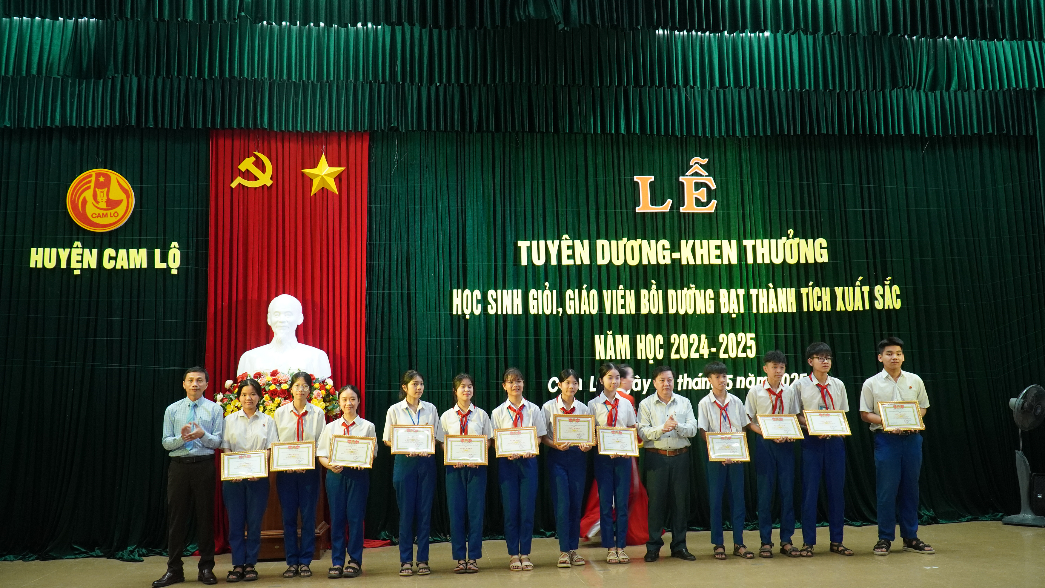 Tại buổi lễ, UBND huyện Cam Lộ đã tặng giấy khen cho 21 học sinh và 9 giáo viên; Phòng Giáo dục và Đào tạo tặng giấy khen cho 39 học sinh đạt thành tích cao trong kỳ học sinh giỏi cấp quốc gia, cấp tỉnh và các kỳ thi khác.