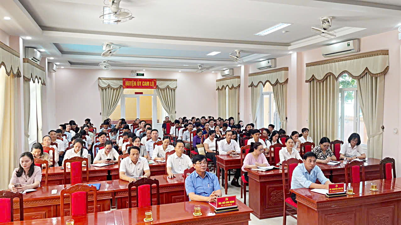 Tại điểm cầu Huyện ủy Cam Lộ có đồng chí Đỗ Văn Bình, TUV, Bí thư Huyện ủy; đồng chí Nguyễn Văn Ân, UVBTV, Chủ tịch Ủy ban MTTQ Việt Nam huyện cùng cán bộ công chức, viên chức xã Cam Lộ (dự kiến sau sáp nhập).