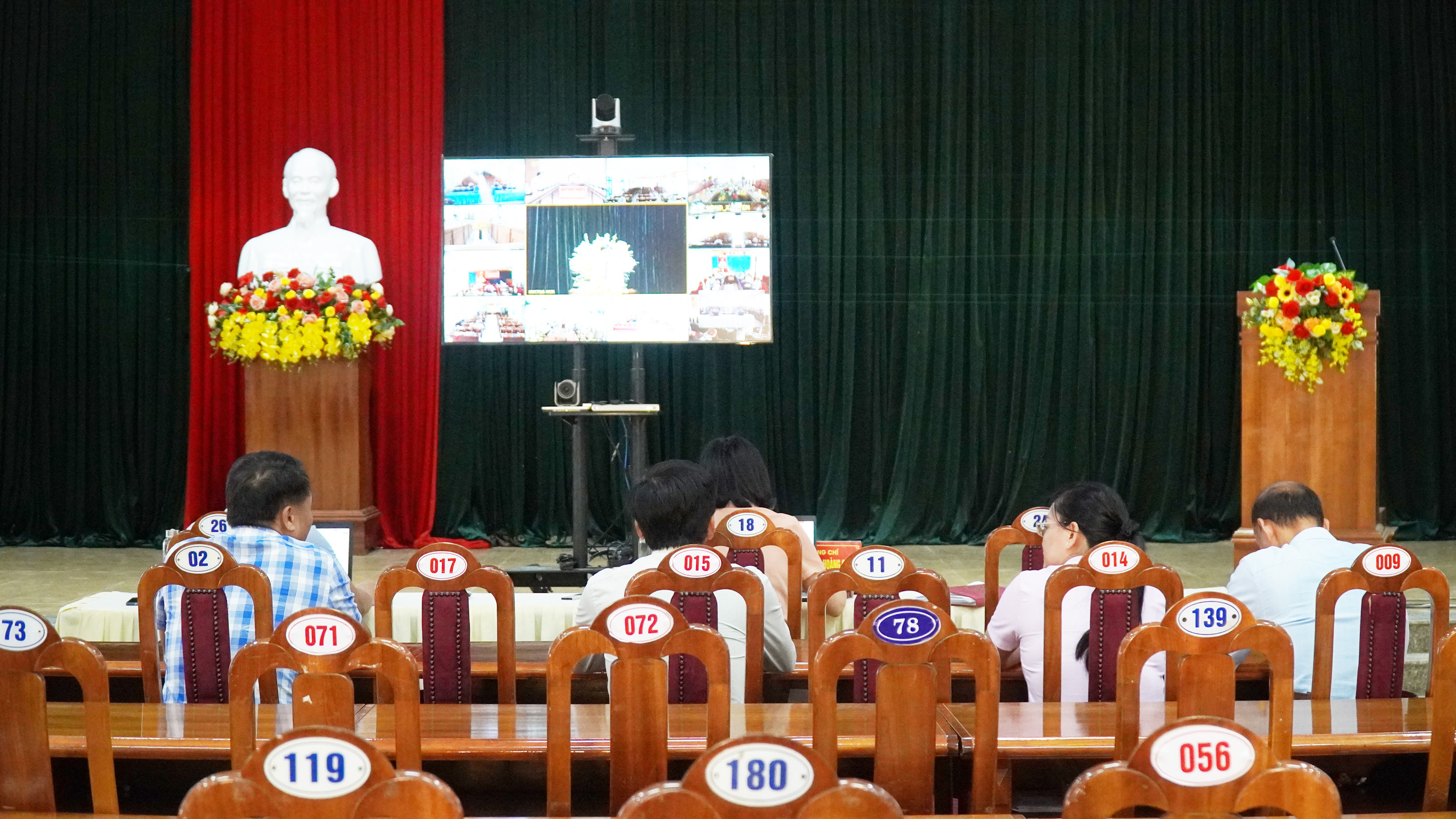 Các đại biểu tham dự tại điểm cầu xã Cam Lộ