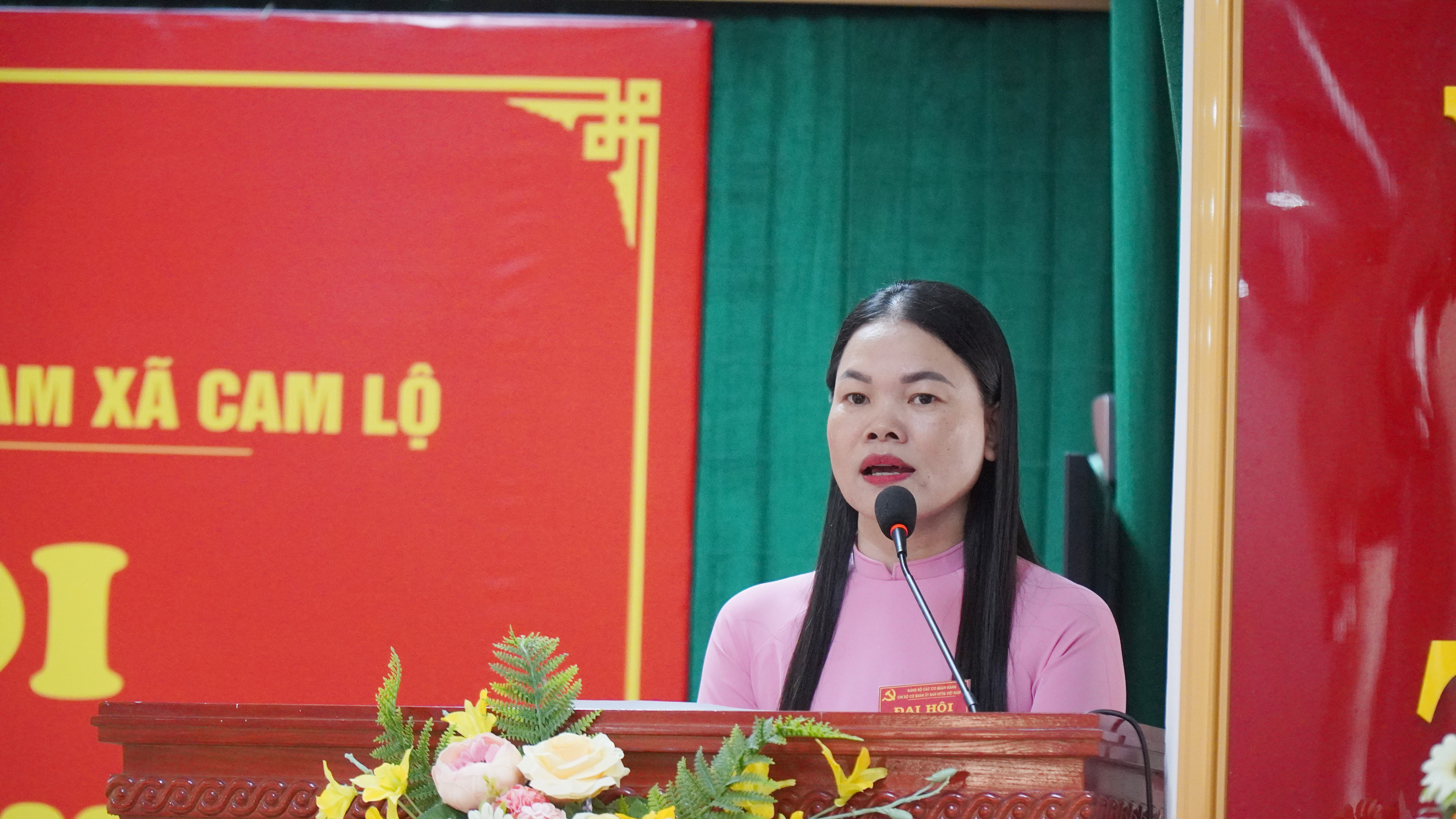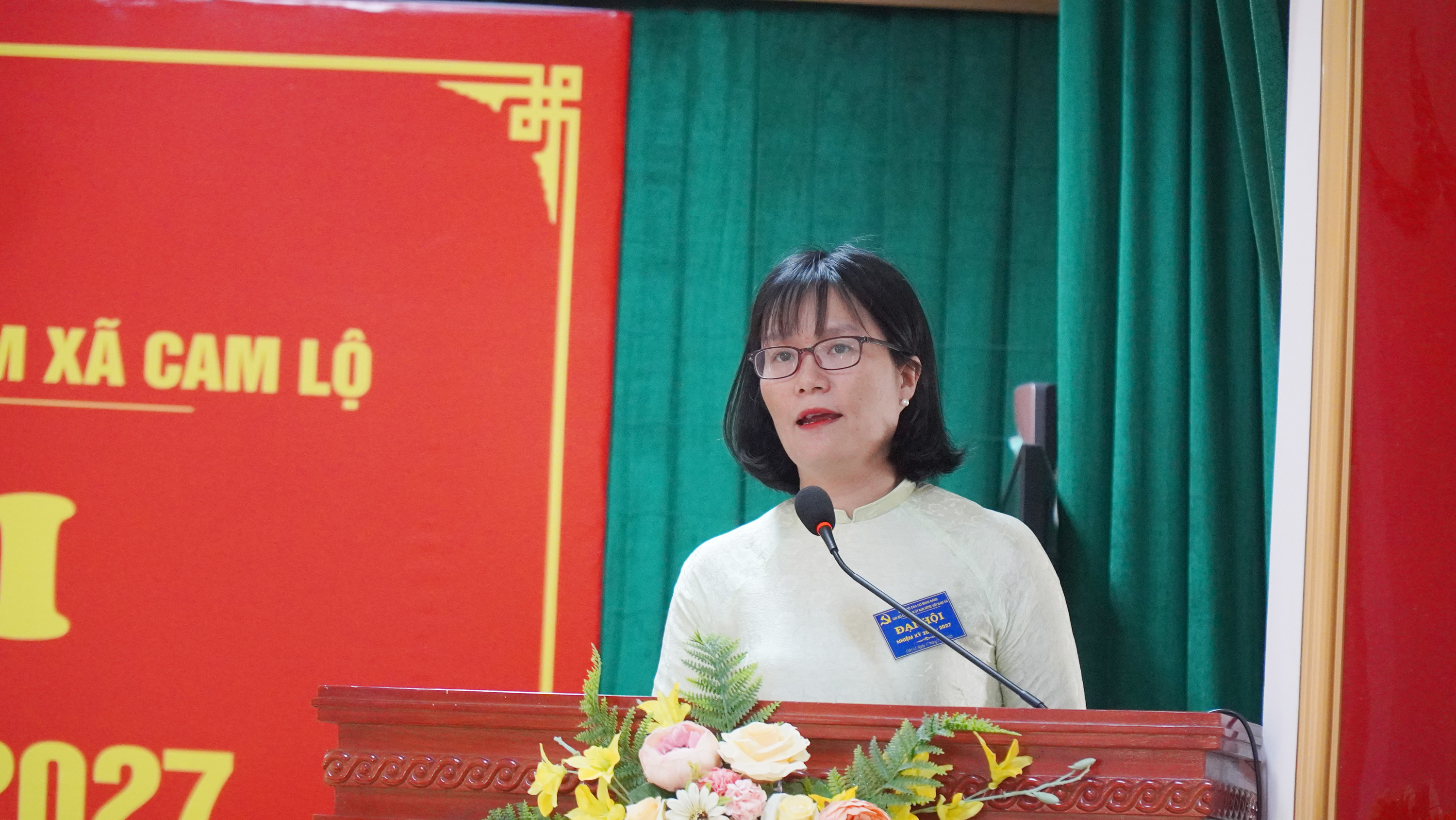 Đồng chí Nguyễn Thị Hoàng Oanh, Phó Bí thư Thường trực Đảng ủy xã Cam Lộ phát biểu chỉ đạo tại Đại hội