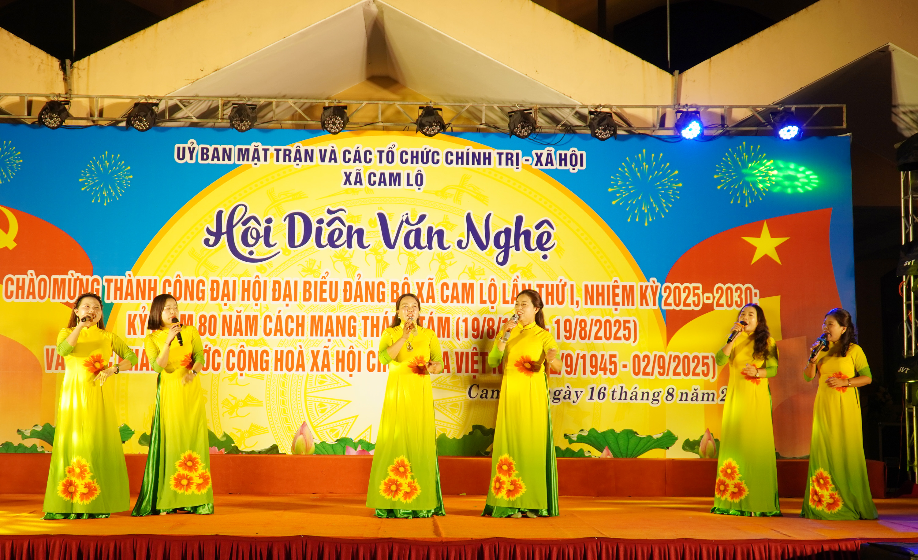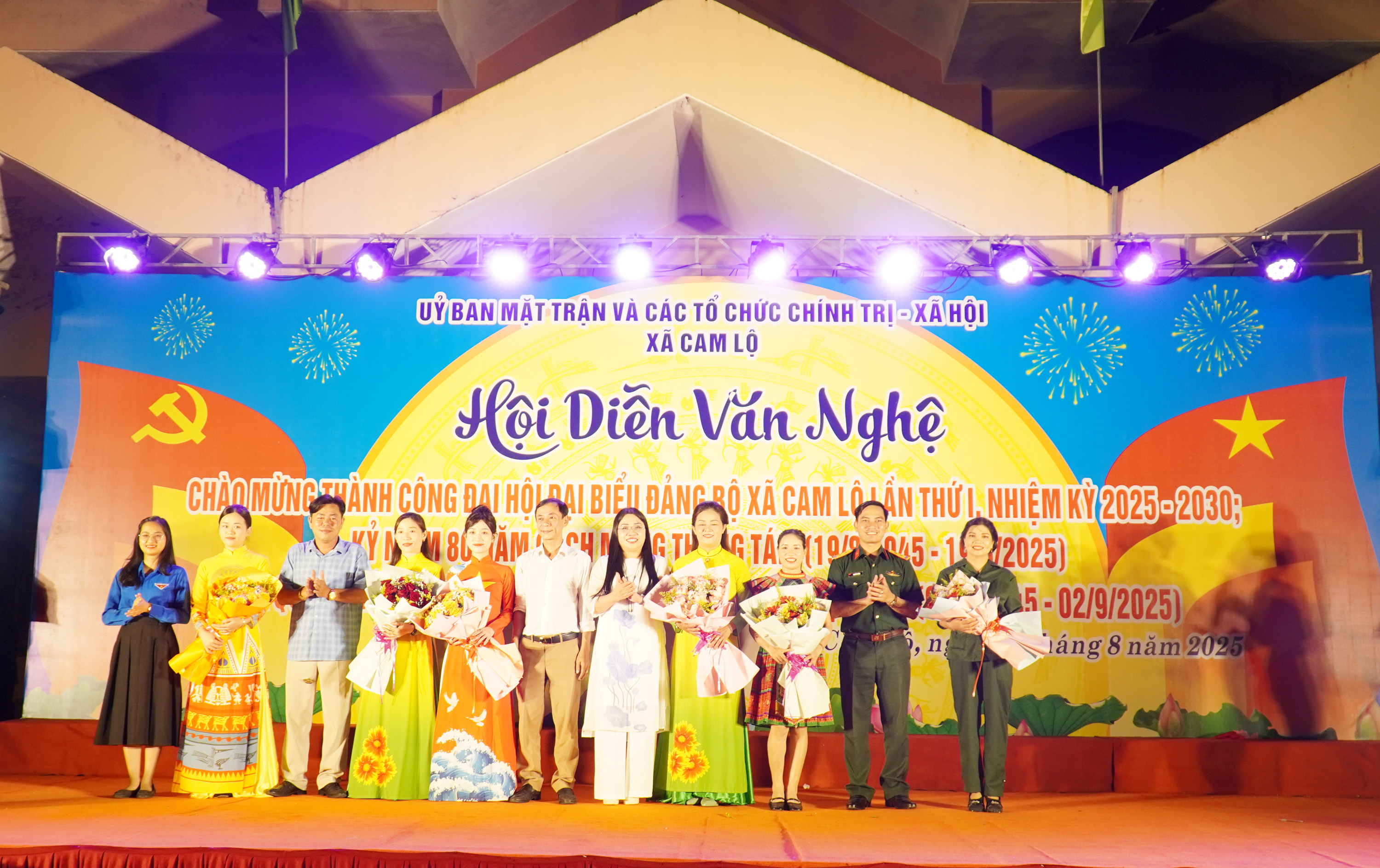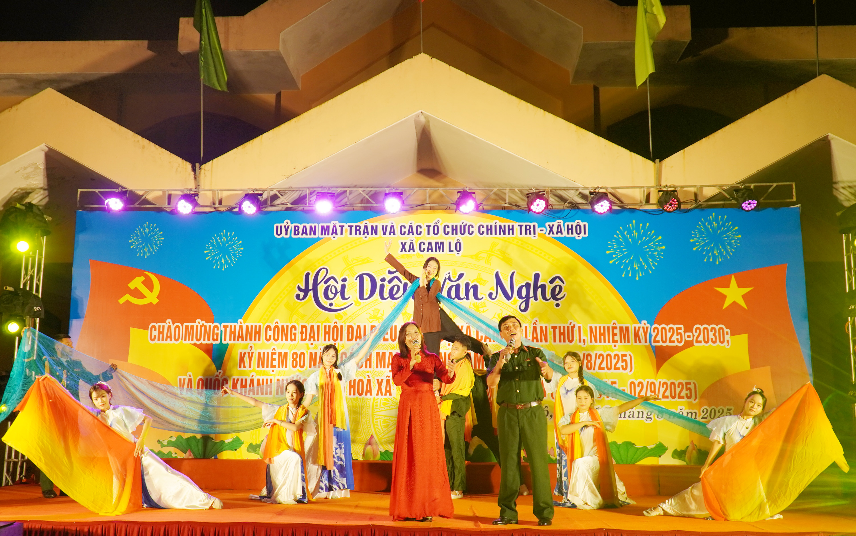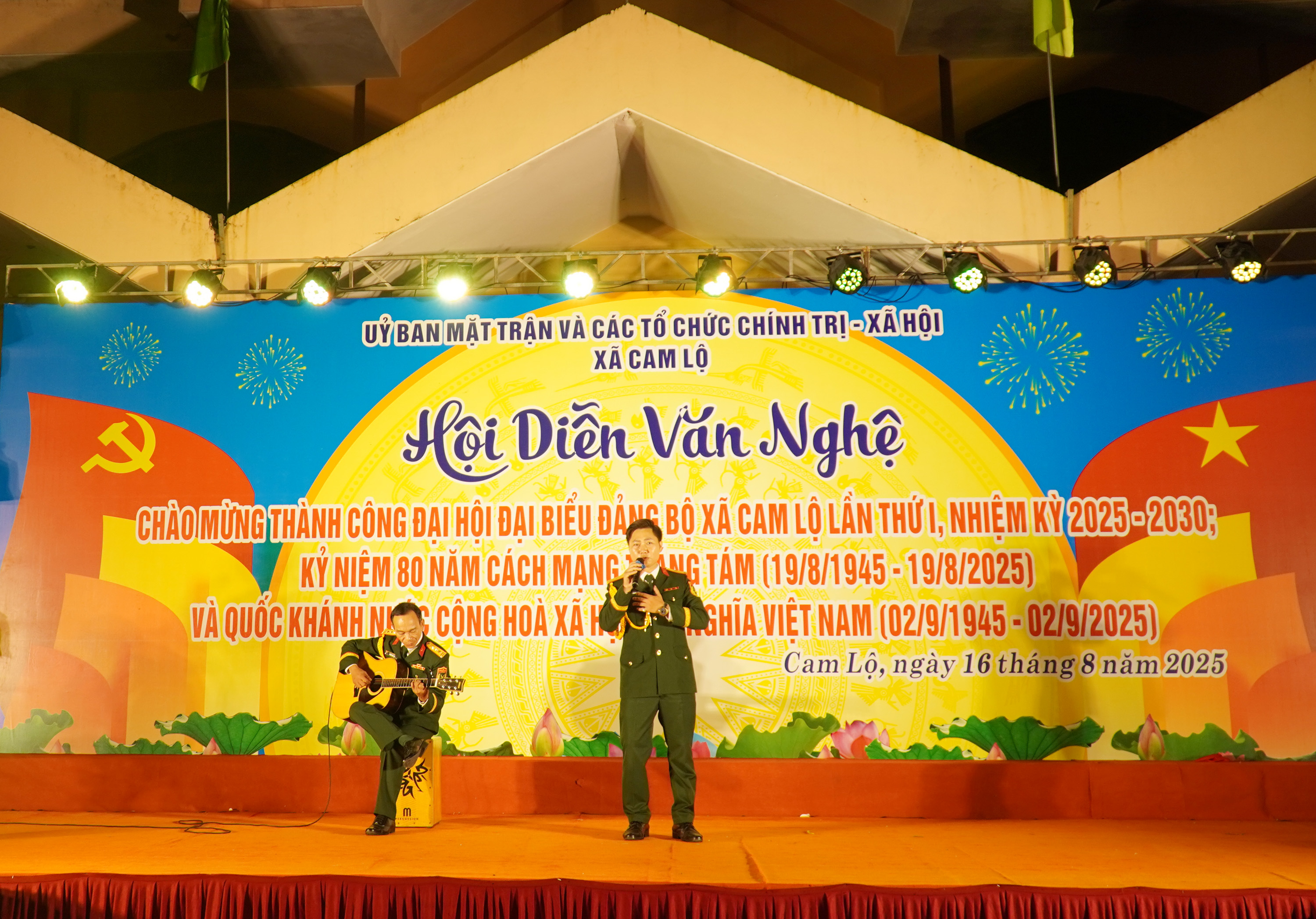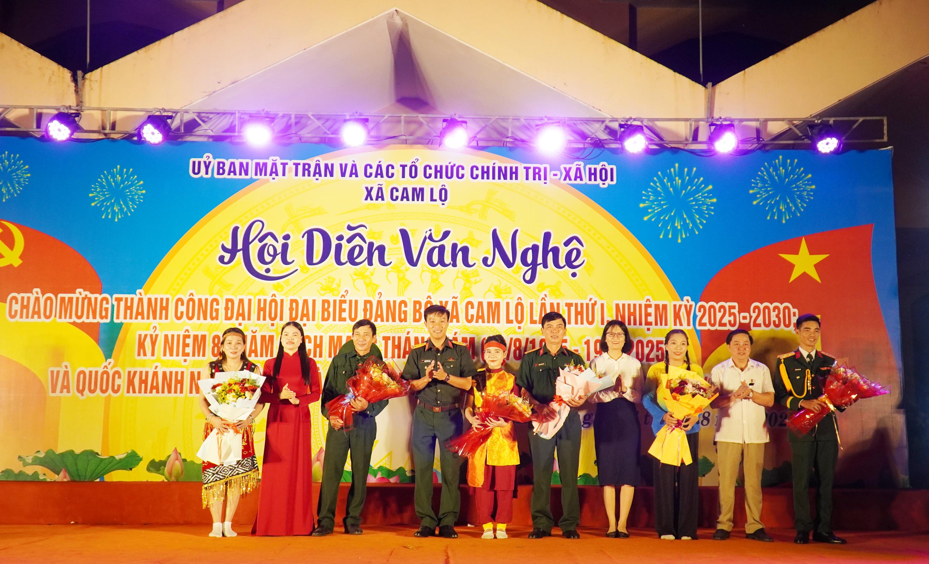 Tối 16/8, Ủy ban MTTQ Việt Nam và các đoàn thể chính trị - xã hội xã Cam Lộ tổ chức Hội diễn văn nghệ quần chúng chào mừng thành công Đại hội Đảng bộ xã Cam Lộ lần thứ nhất, nhiệm kỳ 2025-2030; chào mừng kỷ niệm 80 năm Cách mạng tháng Tám và Quốc khánh 2/9.