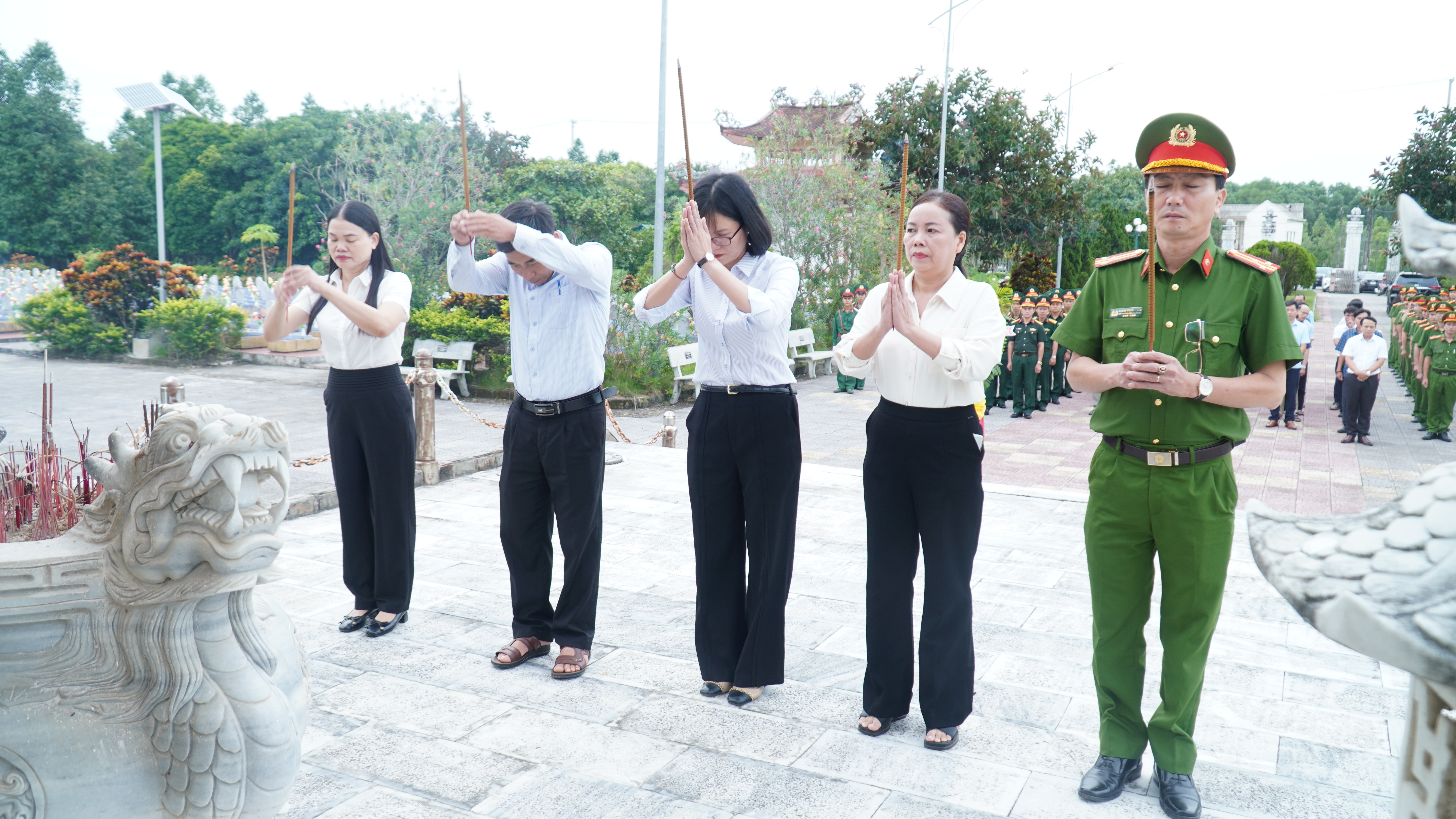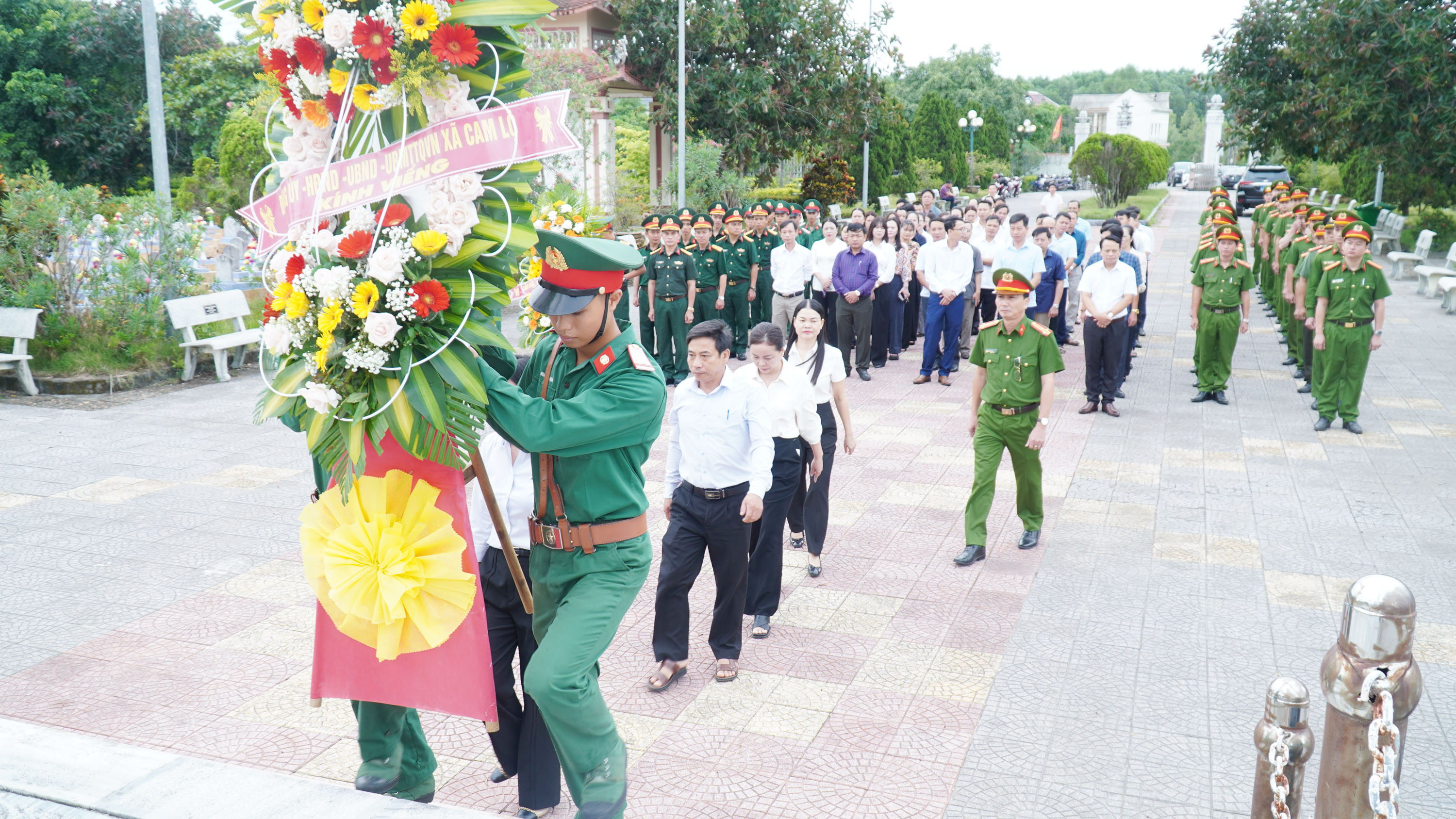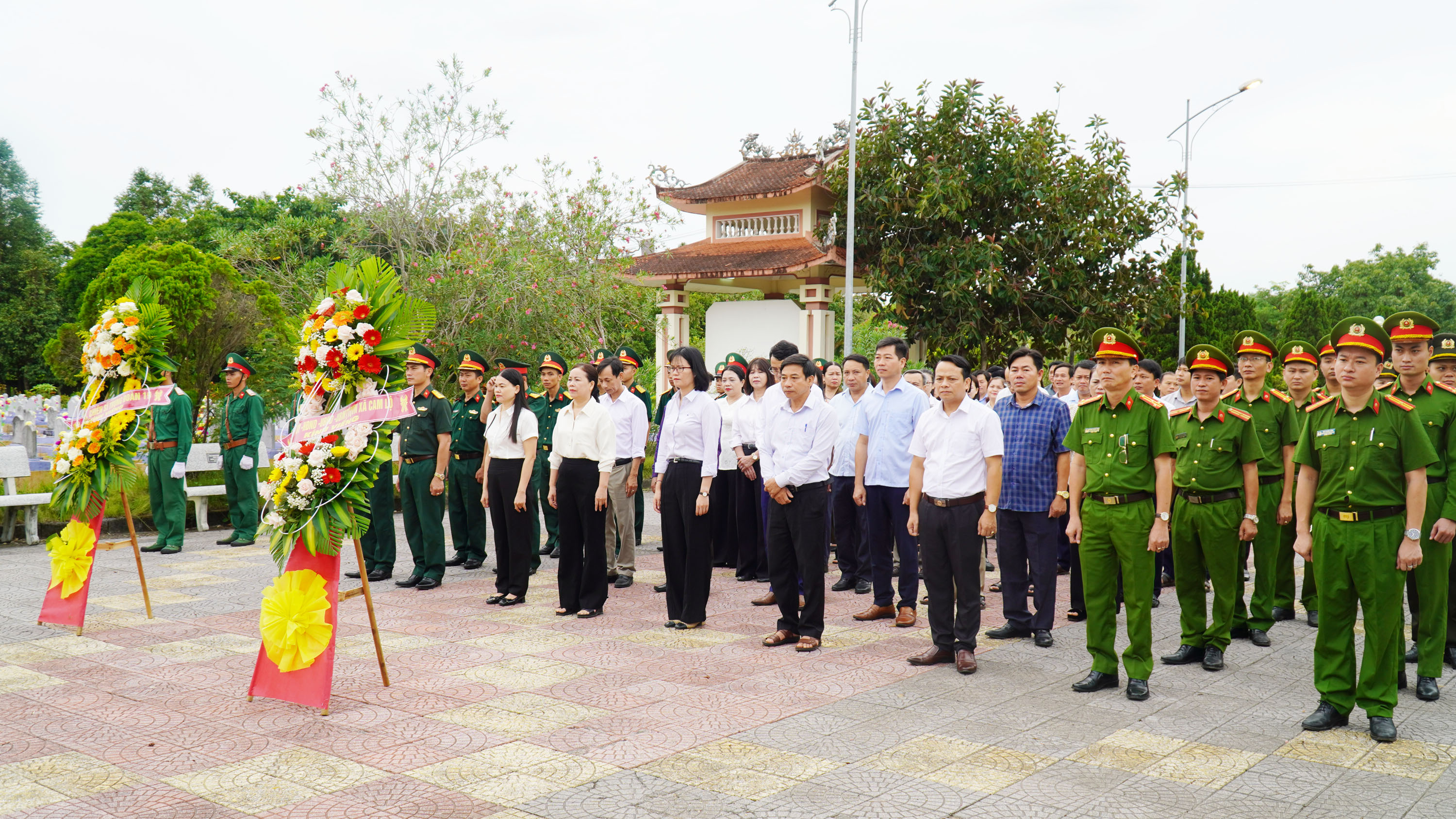 Trong giây phút trang nghiêm và thành kính, các đồng chí lãnh đạo xã đã thỉnh 9 hồi chuông, kính cẩn dâng hoa, dâng hương bày tỏ sự biết ơn sâu sắc của Đảng bộ, chính quyền và Nhân dân xã Cam Lộ đối với công lao to lớn của các anh hùng liệt sĩ. Đồng thời dành phút mặc niệm tưởng nhớ các anh hùng liệt sĩ đã anh dũng chiến đấu hy sinh vì sự nghiệp giải phóng dân tộc, thống nhất đất nước. Sự hy sinh của các anh hùng liệt sĩ đã làm nên những chiến công hào hùng, bất khuất của dân tộc Việt Nam; đồng thời cũng là niềm tự hào của toàn Đảng, toàn quân, toàn dân. Truyền thống anh hùng cách mạng đó đã và đang được gìn giữ và phát huy. Đảng bộ, chính quyền và nhân dân xã Cam Lộ mãi mãi ghi nhớ và biết ơn sâu sắc.