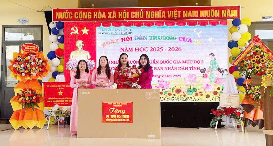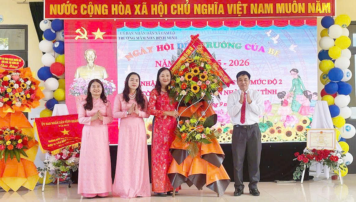 Dịp này UBND tỉnh Quảng Trị đã tặng 1 tivi thông minh 65 inch; trao Cờ thi đua và Bằng công nhận trường đạt chuẩn Quốc gia mức độ 2 cho trường Mầm non Bình Minh.