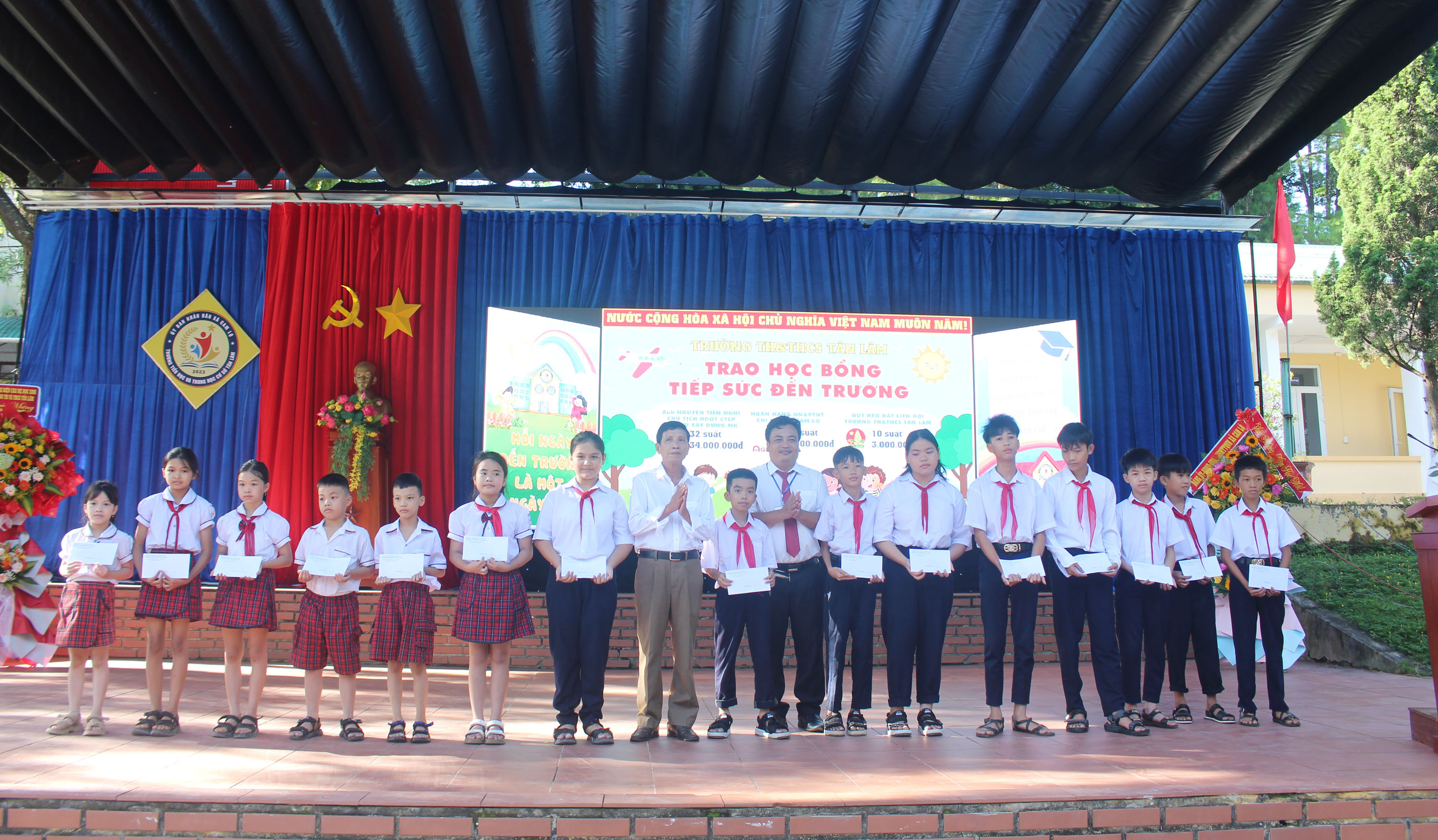 Dịp này, nhà trường và các mạnh thường quân đã trao tặng 52 suất quà cho các em học sinh có hoàn cảnh khó khăn vươn lên học tập tốt với tổng kinh phí trị giá 42 triệu đồng.