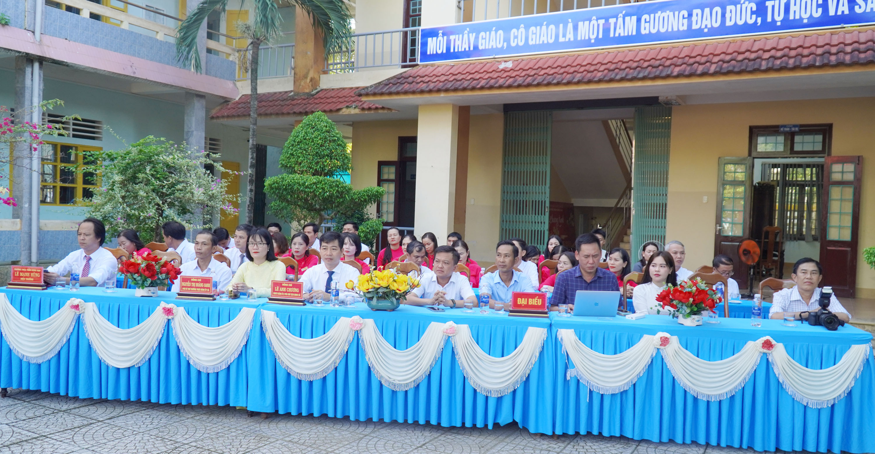 *Đồng chí Nguyễn Thị Hoàng Oanh, Phó Bí thư Thường trực Đảng ủy; đồng chí Lê Anh Chương, UVBTV Đảng ủy, Phó Chủ tịch UBND xã Cam Lộ dự lễ khai giảng năm học mới tại Trường THCS Trần Hưng Đạo.