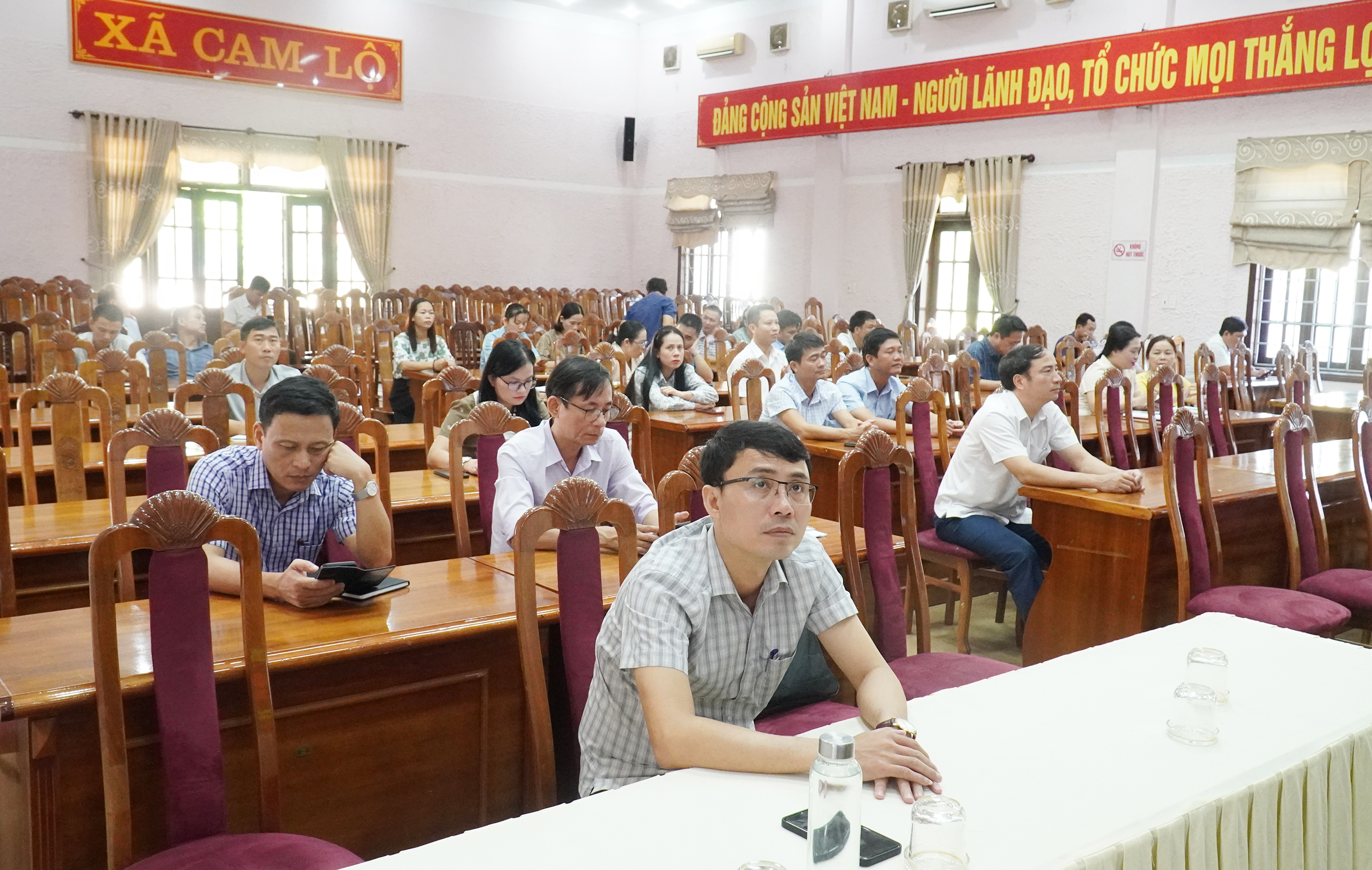 Các đại biểu tham dự hội nghị tại điểm cầu xã Cam Lộ