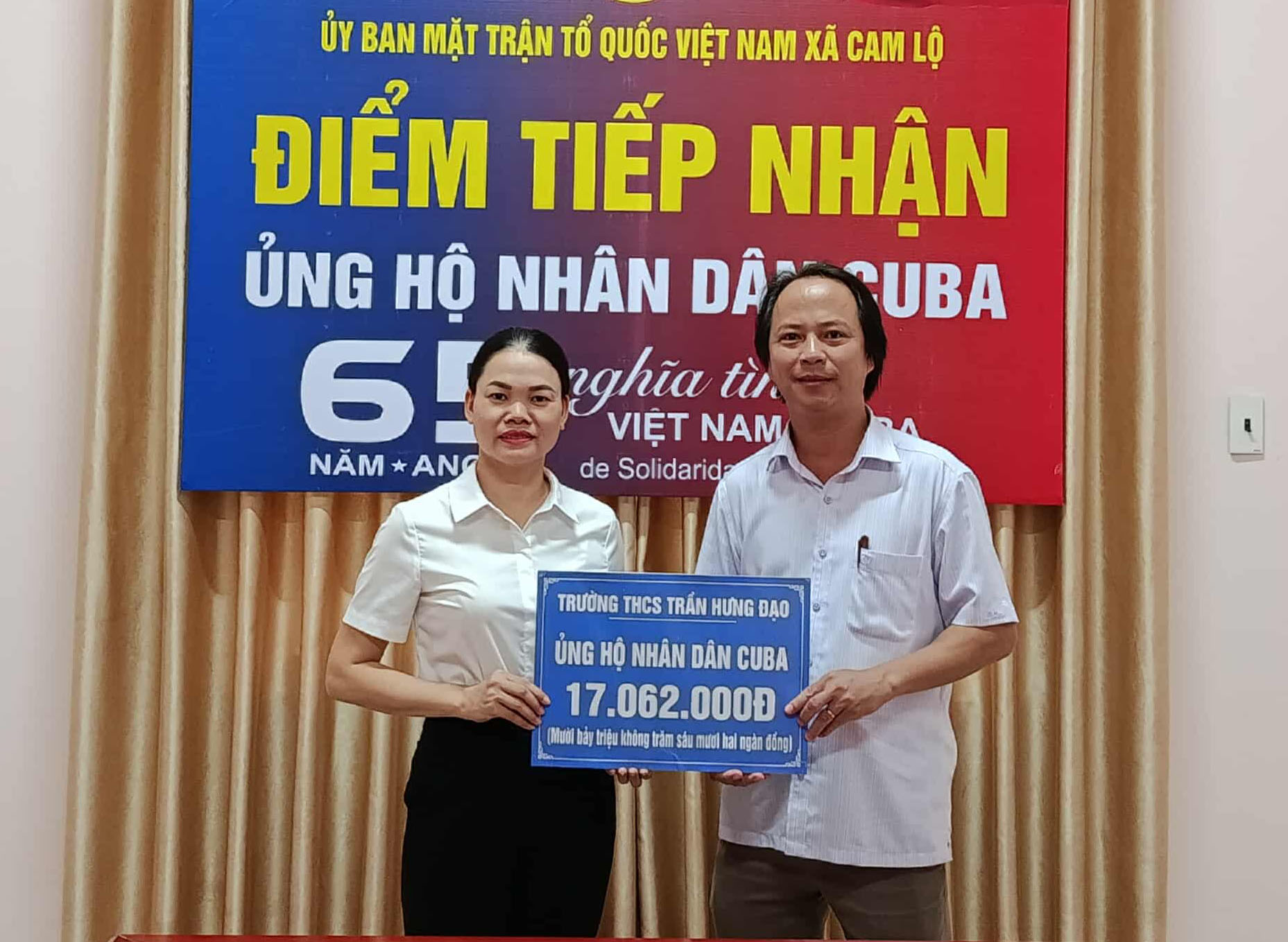 Ngày 25/9/2025, Ủy ban MTTQ Việt Nam xã Cam Lộ cho biết, đơn vị tiếp tục nhận được nhiều đóng góp từ các cơ quan, đơn vị, thôn, xóm và cá nhân trên địa bàn xã để ủng hộ Nhân dân Cuba trong chương trình “65 năm Nghĩa tình Việt Nam – Cuba”. Đến nay, tổng số tiền quyên góp đã đạt hơn 497 triệu đồng.