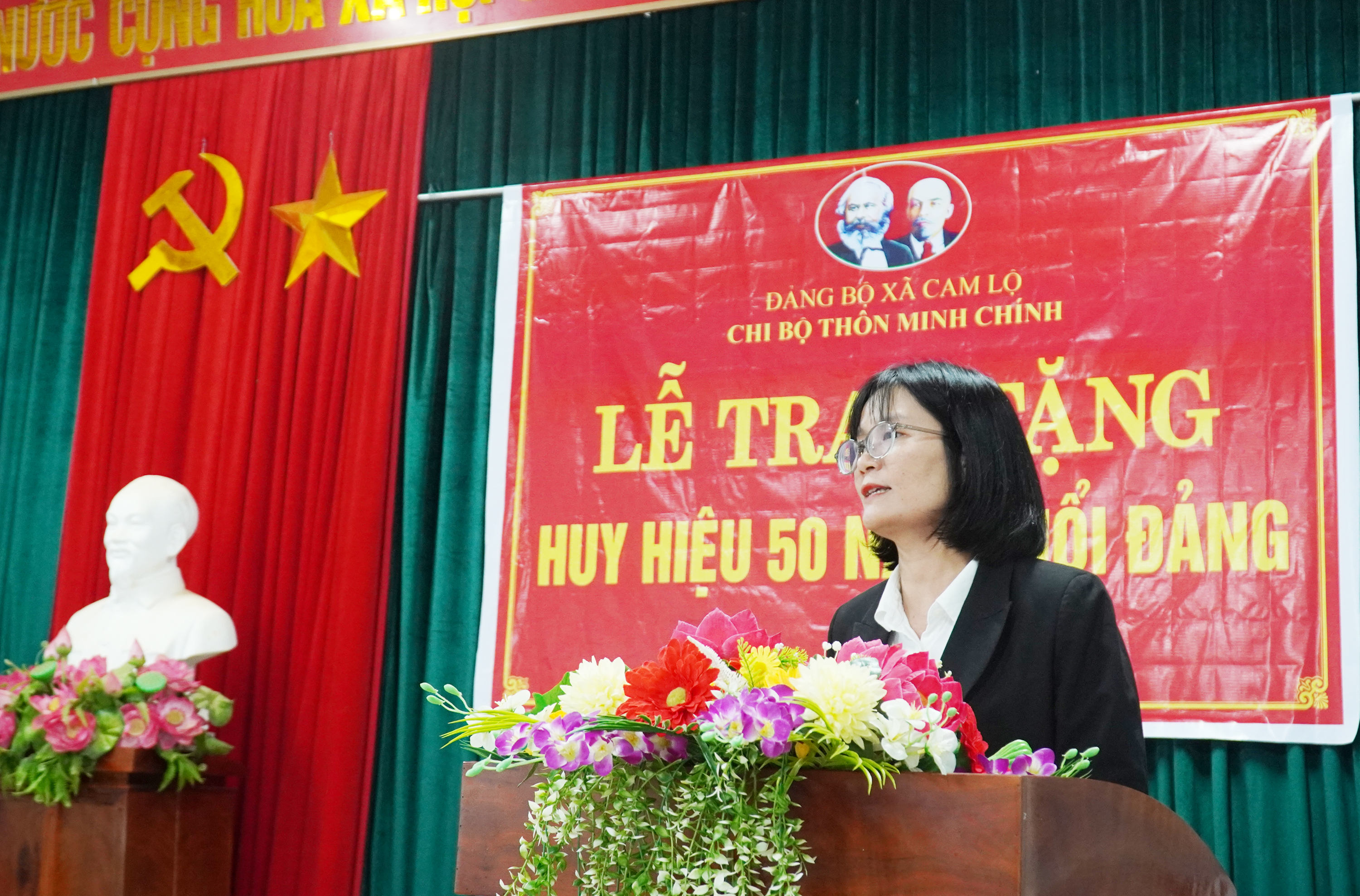 Ngày 3/11, đồng chí Nguyễn Thị Hoàng Oanh, Phó Bí thư Thường trực Đảng ủy xã Cam Lộ đã đến trao Huy hiệu 50 năm tuổi Đảng cho đồng chí Nguyễn Xuân Biểu, đảng viên sinh hoạt tại Chi bộ thôn Minh Chính. Cùng đi có đồng chí Trần Trung Nguyên, ĐUV, Phó trưởng Ban Xây dựng Đảng.