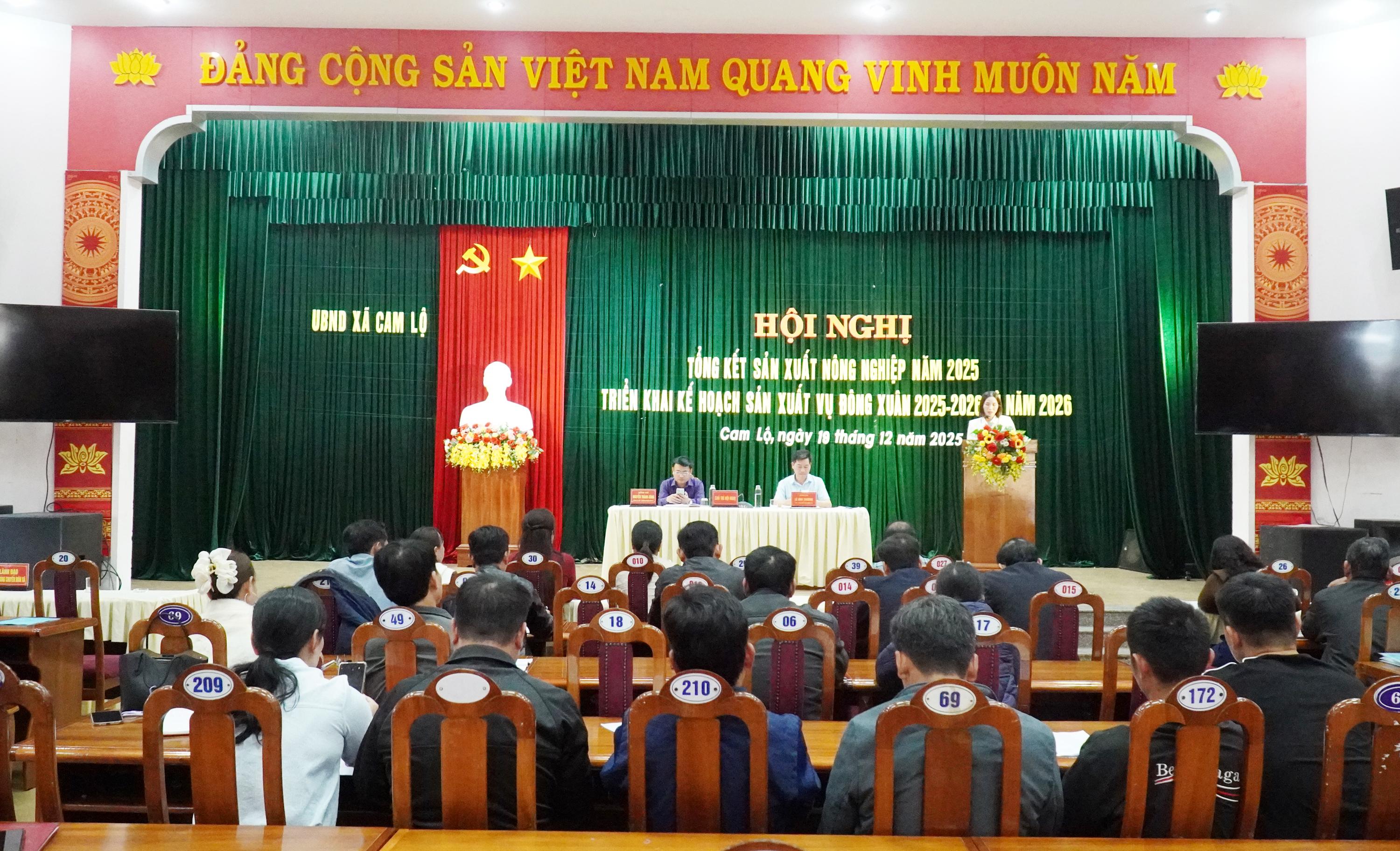 Chiều 19/12, UBND xã Cam Lộ tổ chức hội nghị tổng kết sản xuất nông nghiệp năm 2025, triển khai kế hoạch sản xuất vụ Đông Xuân 2025-2026 và năm 2026. Tham dự có đồng chí Lê Anh Chương, Phó Chủ tịch UBND xã.