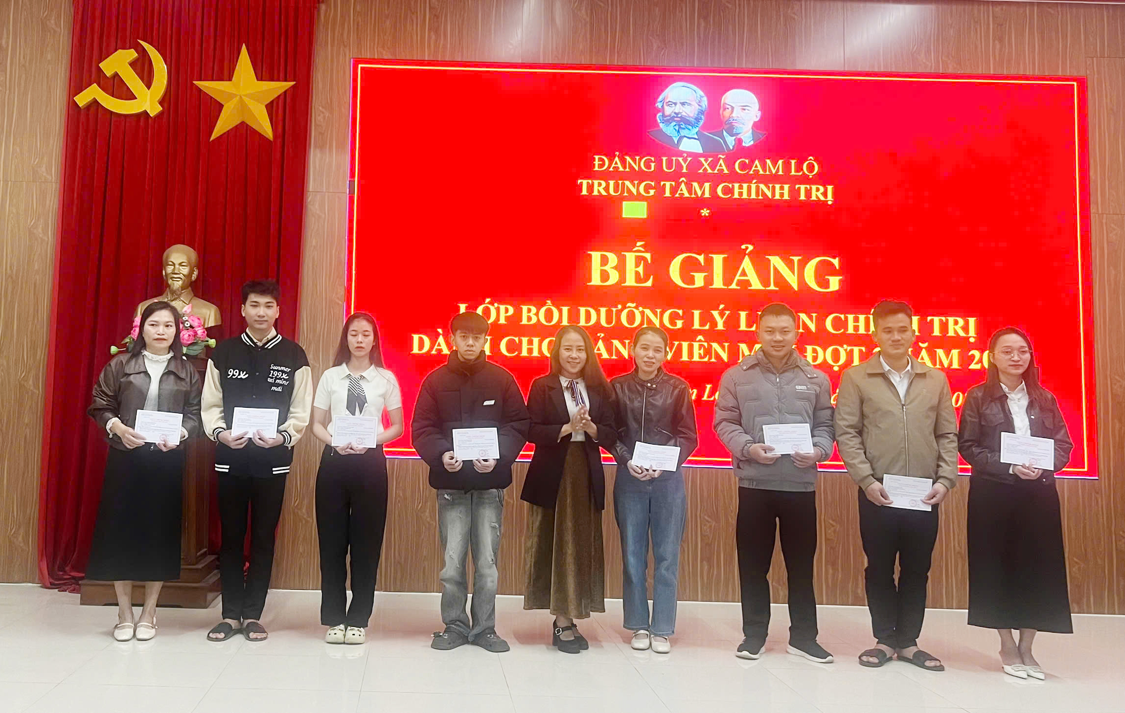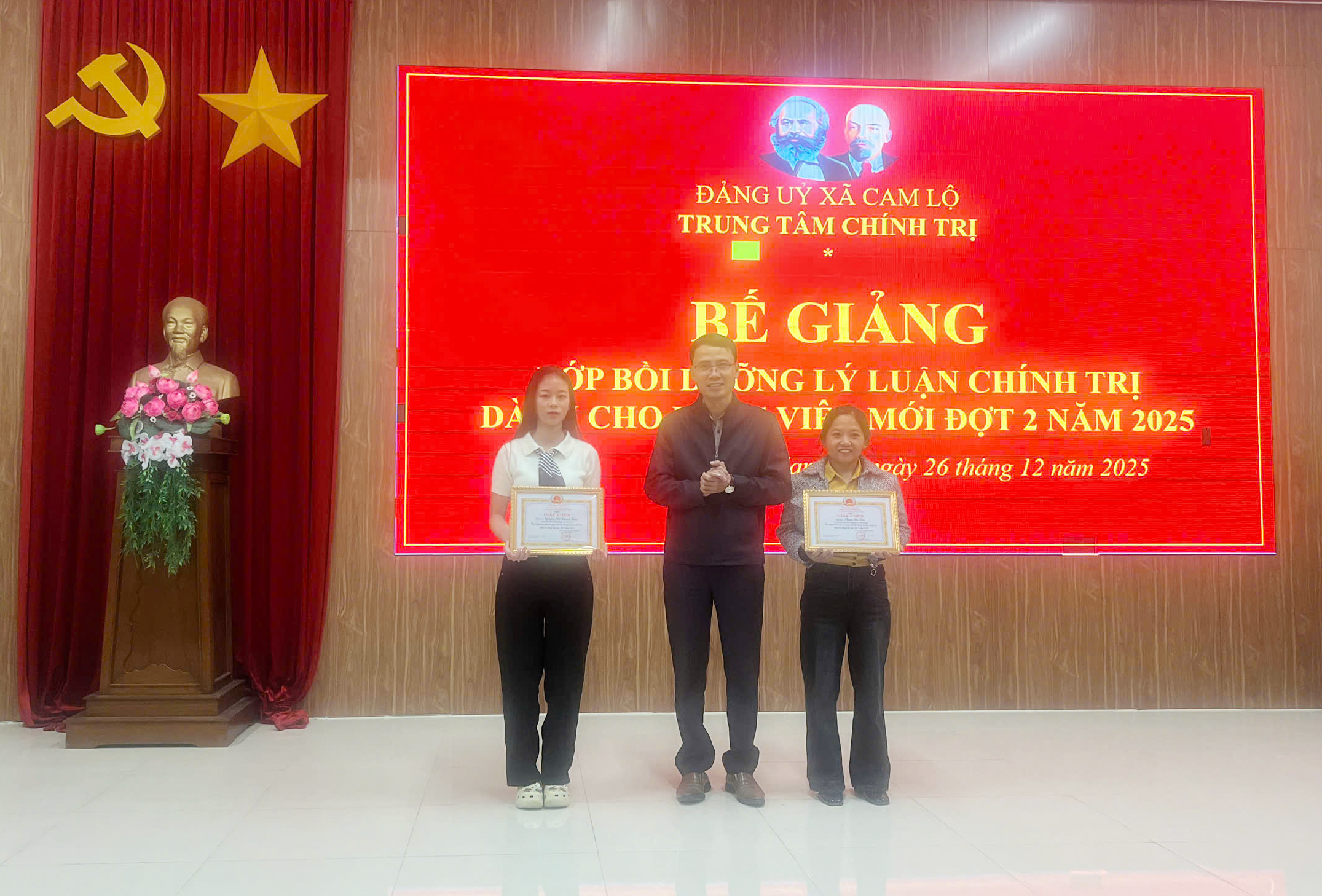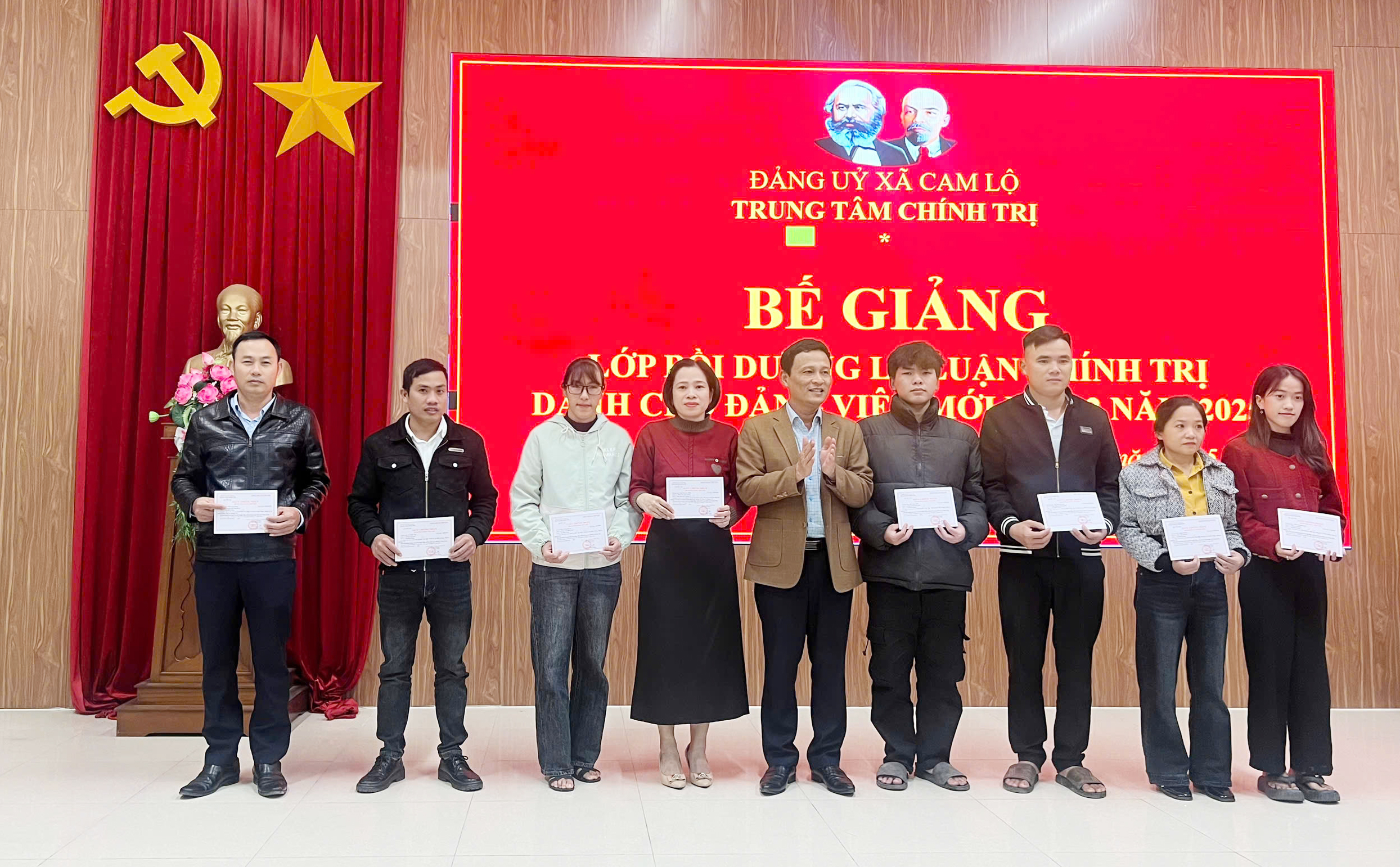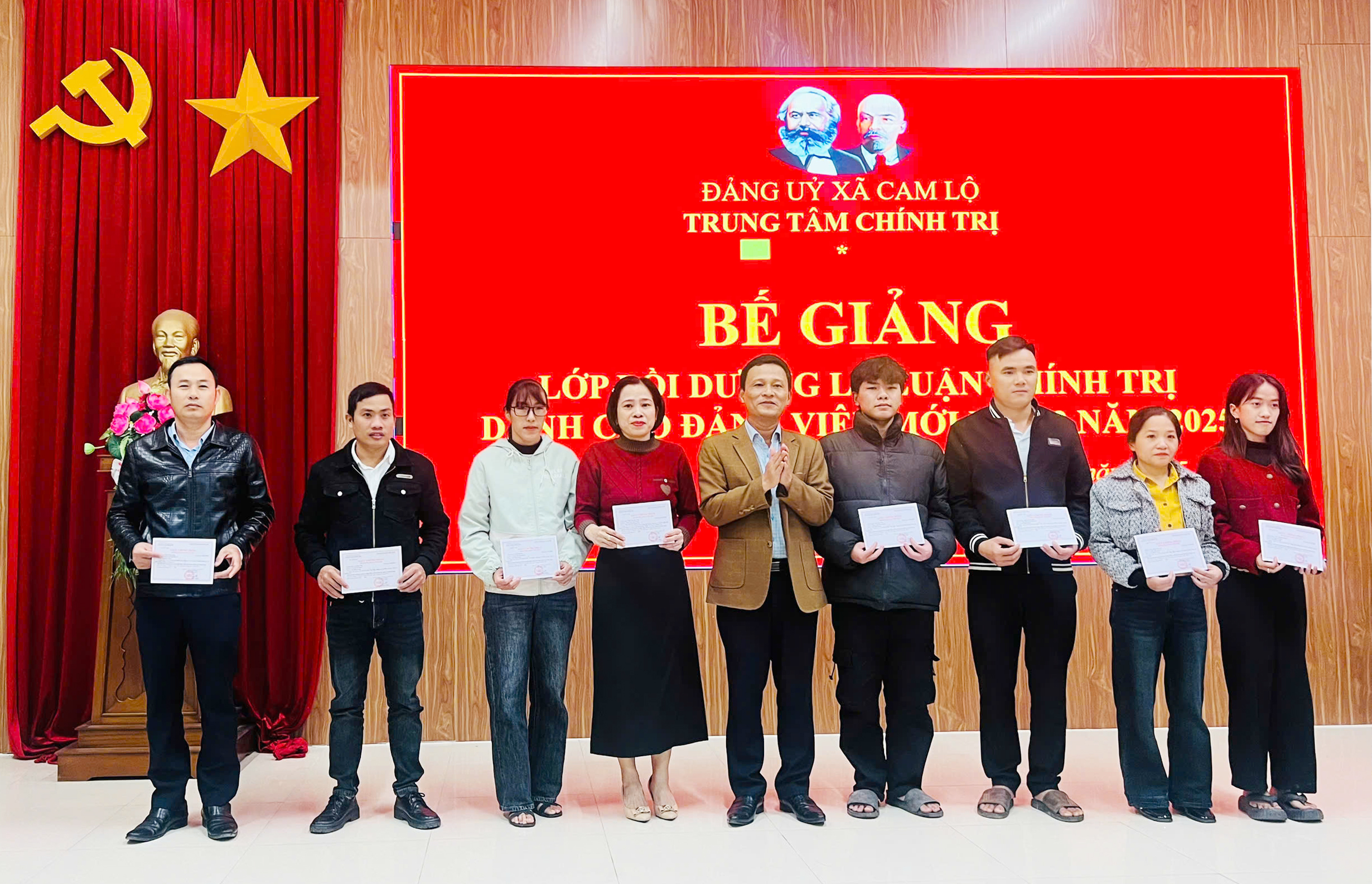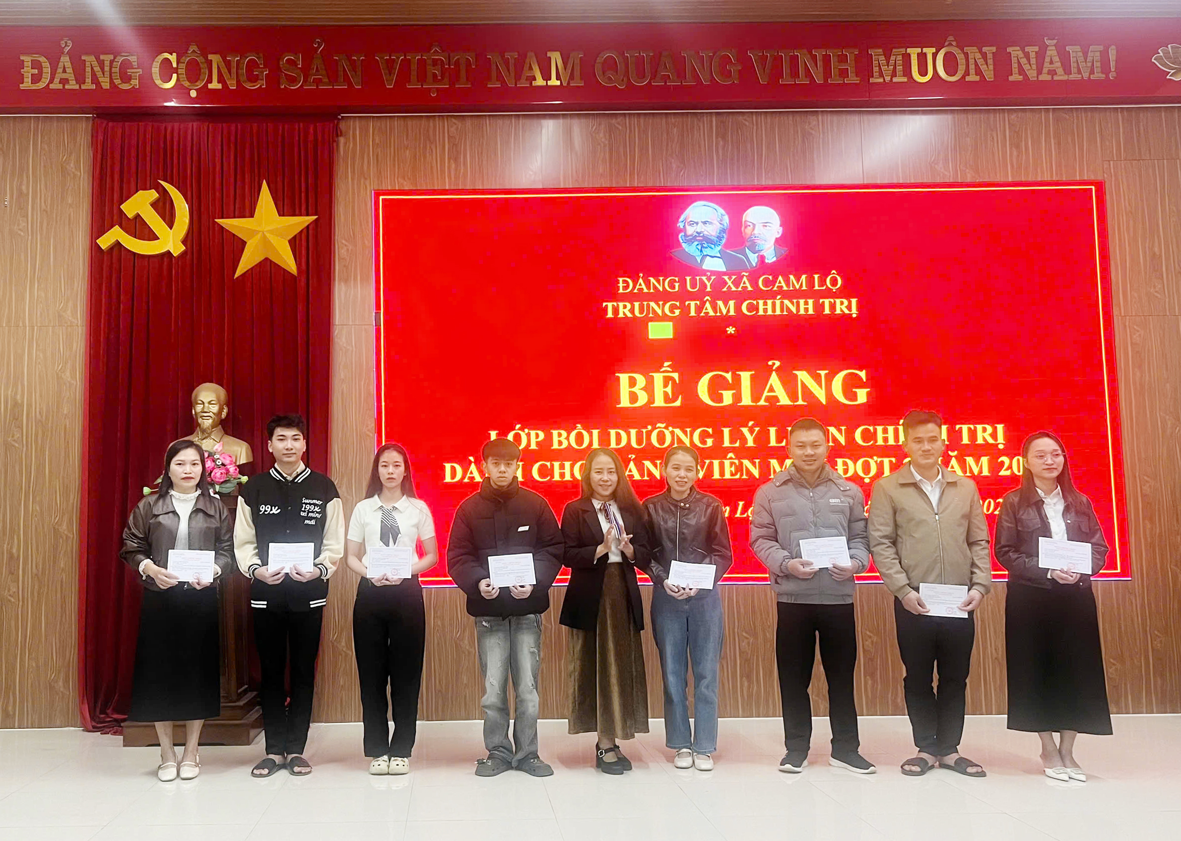 Ngày 26/12/2025, Trung tâm Chính trị xã Cam Lộ tổ chức Bế giảng lớp bồi dưỡng lý luận chính trị dành cho Đảng viên mới đợt 2 năm 2025 cho 22 học viên đến từ 2 xã Cam Lộ và Hiếu Giang.