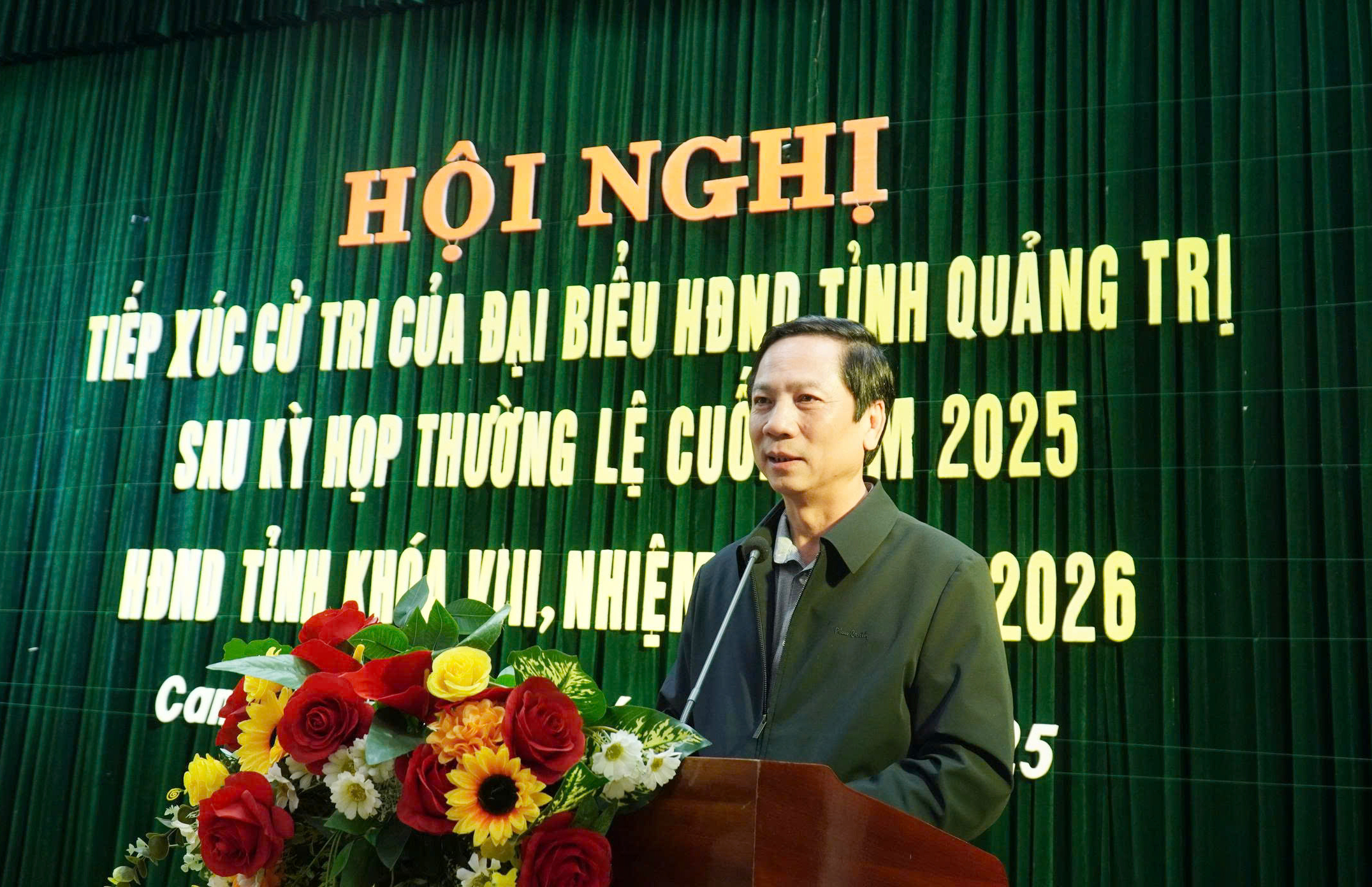 Tại buổi tiếp xúc, cử tri đã nghe đại biểu HĐND tỉnh báo cáo kết quả kỳ họp thường lệ cuối năm 2025, HĐND tỉnh khóa VIII và những nội dung cơ bản của các nghị quyết được thông qua tại cuộc họp; báo cáo kết quả hoạt động của HĐND tỉnh trong năm 2025.