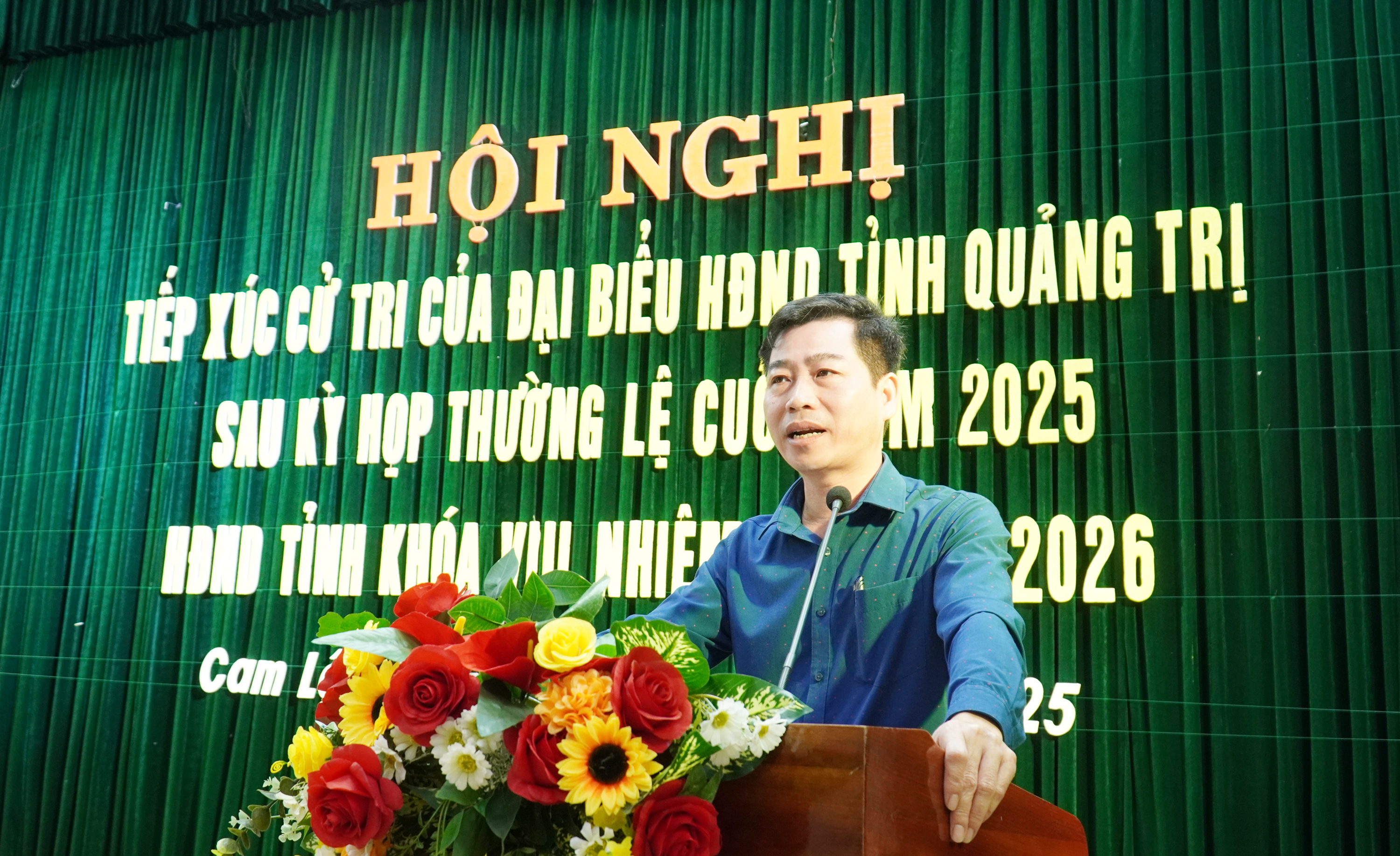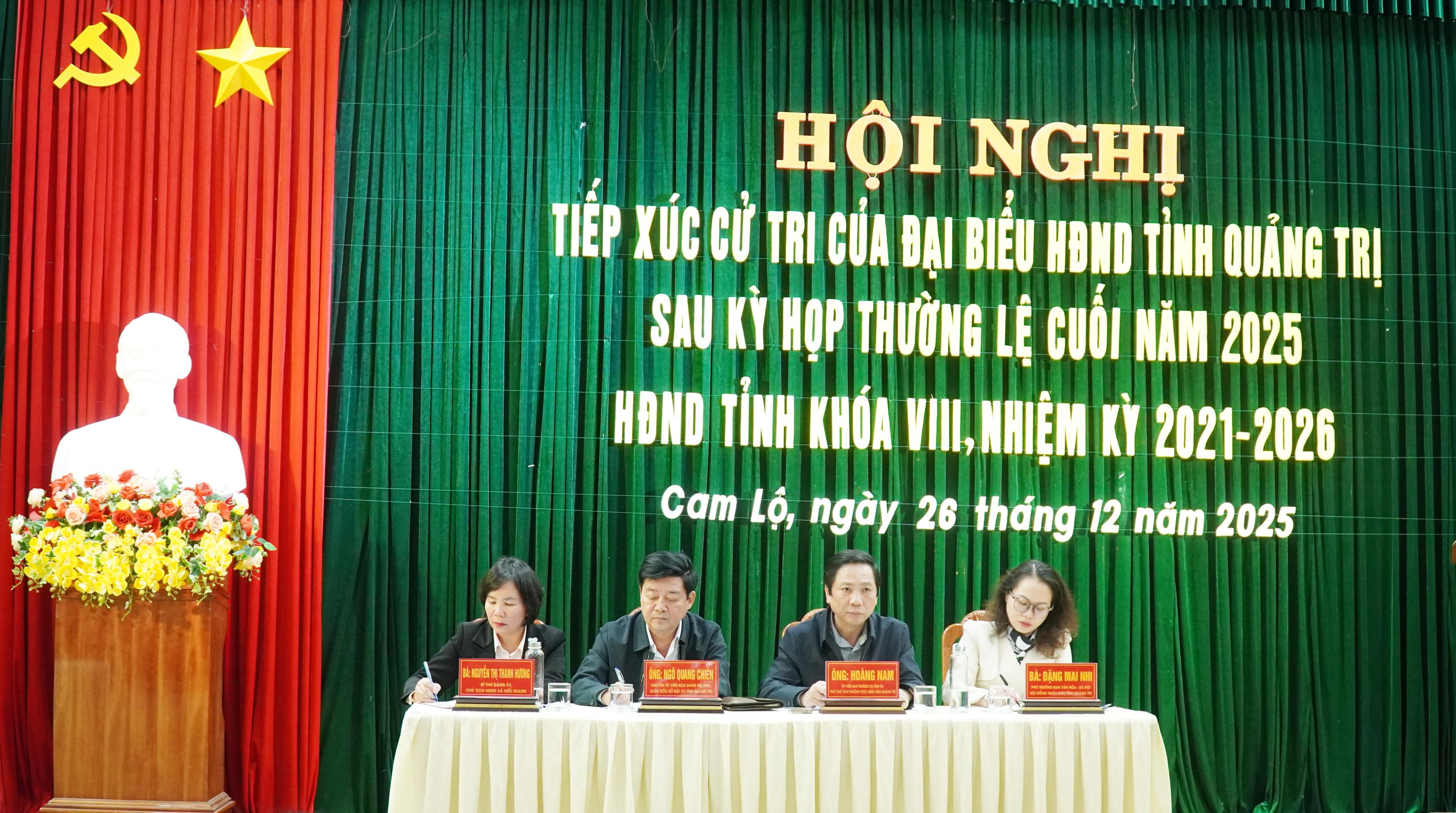 Cử tri xã Cam Lộ bày tỏ sự đồng tình, đánh giá cao về các nội dung, kết quả kỳ họp vừa qua cũng như những thành tựu về phát triển kinh tế-xã hội trên địa bàn tỉnh trong năm 2025. Đồng thời kiến nghị các vấn đề liên quan đến đất đai, nhất là đất ở, đất sản xuất và đất nghĩa địa; một số tuyến đường, hạ tầng giao thông nông thôn trên địa bàn xã hư hỏng, xuống cấp nhưng chưa có phương án xử lý kịp thời…