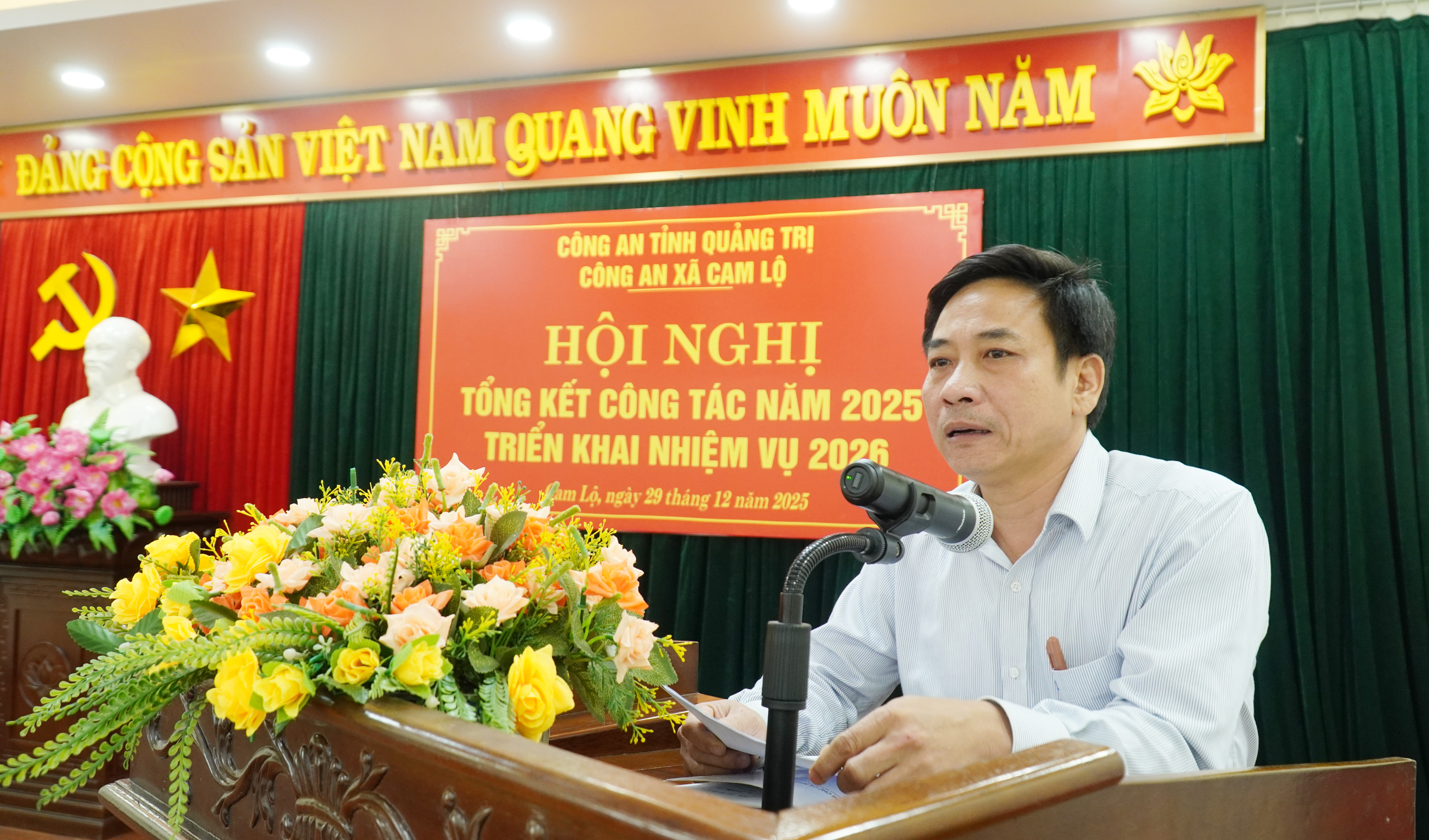 Phát biểu chỉ đạo tại hội nghị, đồng chí Đại tá Lê Phương Nam, Phó Giám đốc Công an tỉnh và đồng chí Nguyễn Văn Ân, Phó Bí thư Đảng ủy, Chủ tịch UBND xã ghi nhận, biểu dương những nỗ lực, kết quả mà tập thể Công an xã Cam Lộ đã đạt được trong năm 2025. Đồng thời nhấn mạnh, trong thời gian tới, tình hình an ninh trật tự tiếp tục tiềm ẩn nhiều yếu tố phức tạp; yêu cầu lực lượng Công an xã không ngừng nâng cao bản lĩnh chính trị, trình độ nghiệp vụ, giữ vững kỷ luật, kỷ cương, xây dựng lực lượng Công an cơ sở trong sạch, vững mạnh, đáp ứng yêu cầu nhiệm vụ trong tình hình mới, thực sự là chỗ dựa tin cậy của cấp ủy, chính quyền và Nhân dân.