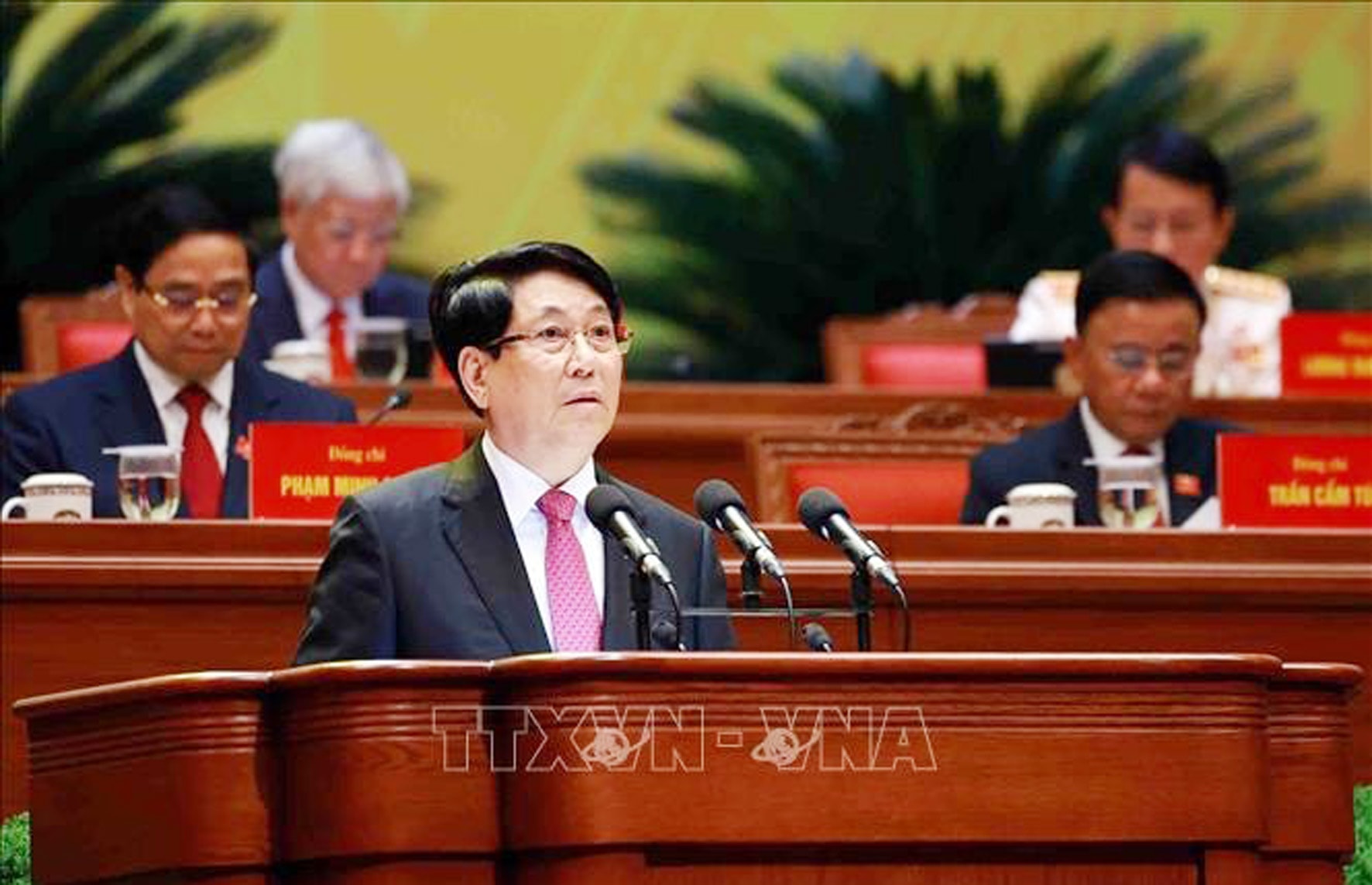 Đồng chí Lương Cường, Ủy viên Bộ Chính trị, Chủ tịch nước trình bày Diễn văn khai mạc Đại hội.