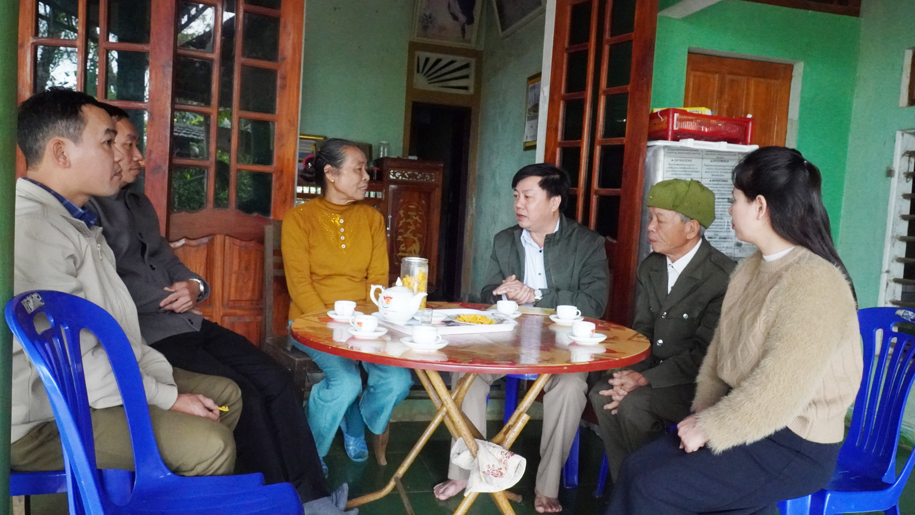 Tại các nơi đến thăm, đồng chí Phó Chủ tịch UBND xã ân cần thăm hỏi sức khỏe, đời sống các gia đình, đồng thời bày tỏ lòng tri ân sâu sắc trước những đóng góp to lớn của các thế hệ lãnh đạo và người có công với cách mạng đối với sự nghiệp xây dựng và phát triển quê hương.