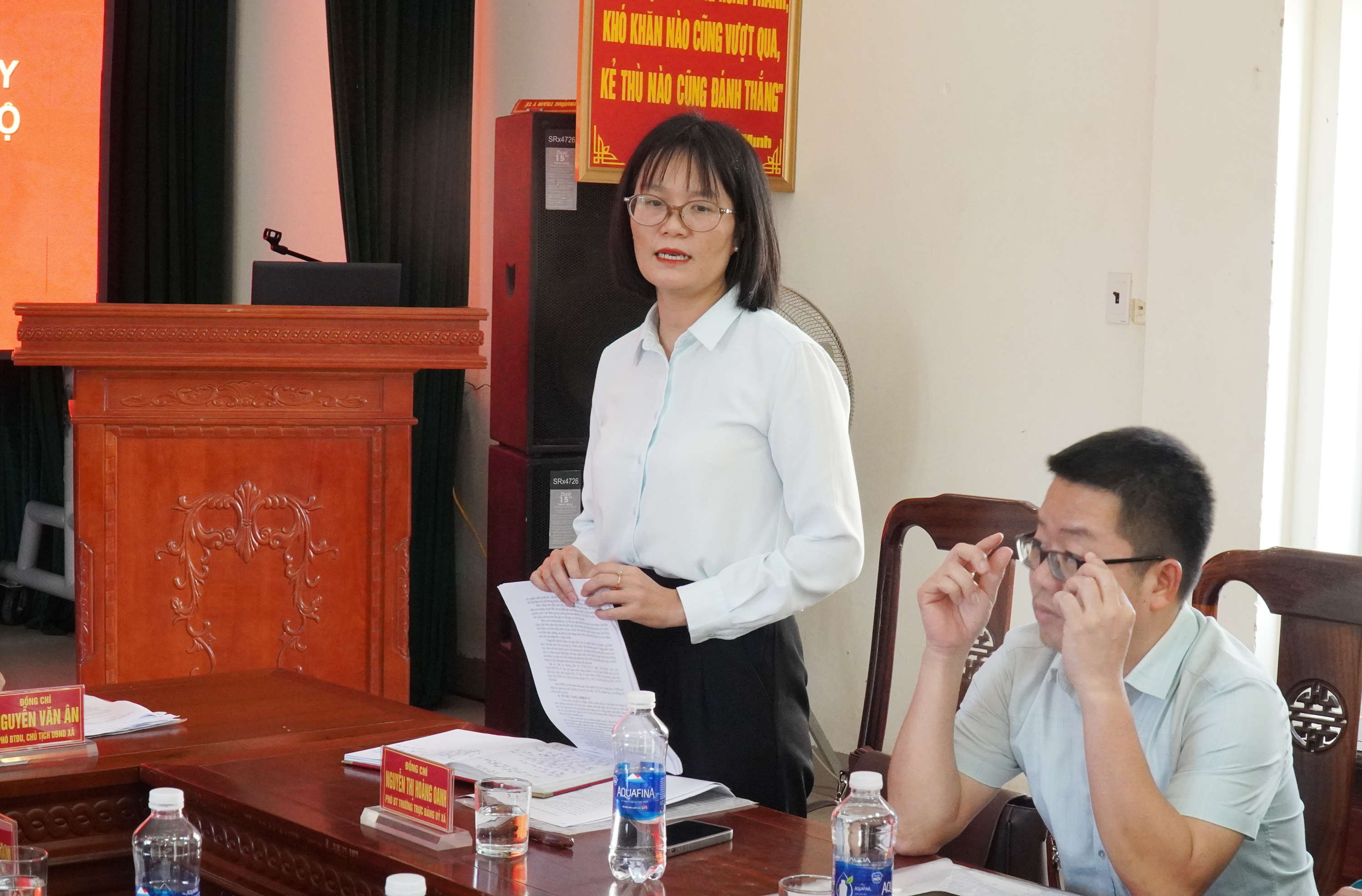 Đồng chí Nguyễn Thị Hoàng Oanh, Phó Bí thư Thường trực Đảng ủy xã phát biểu