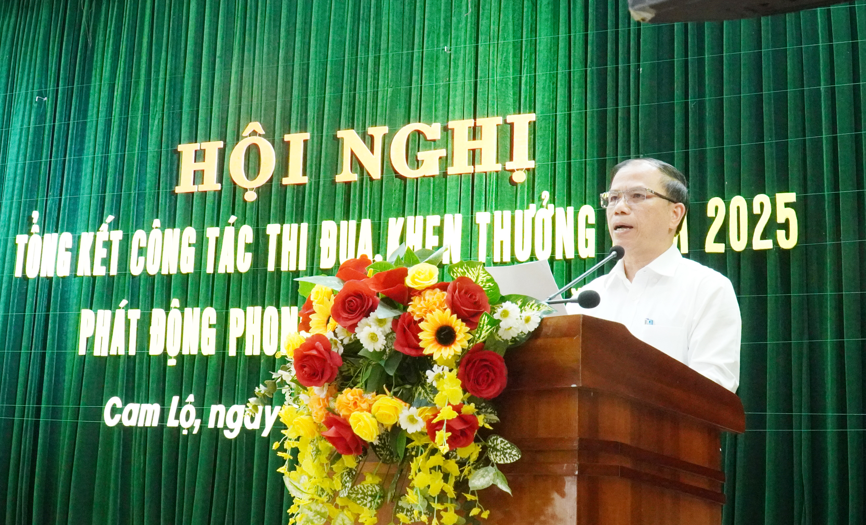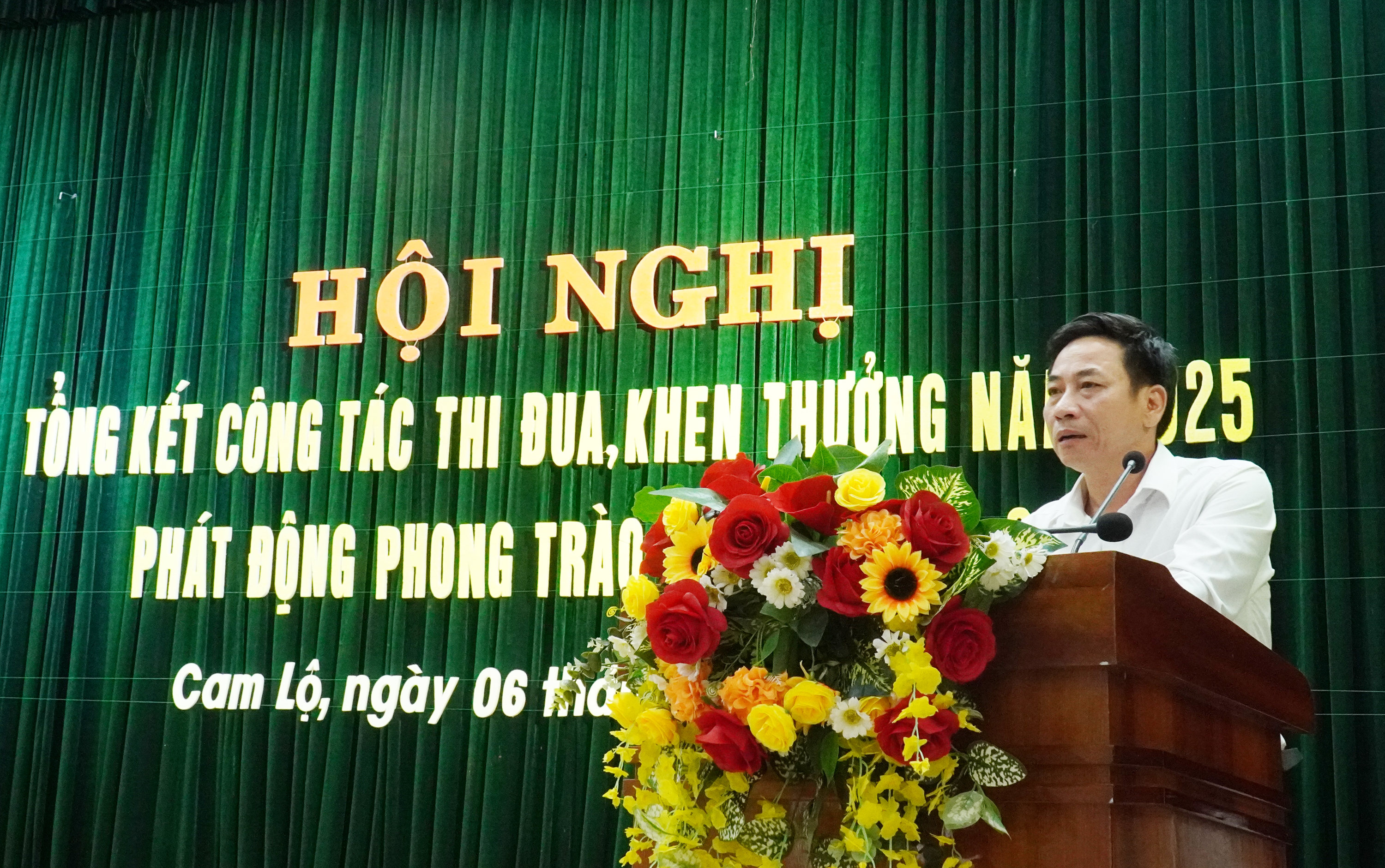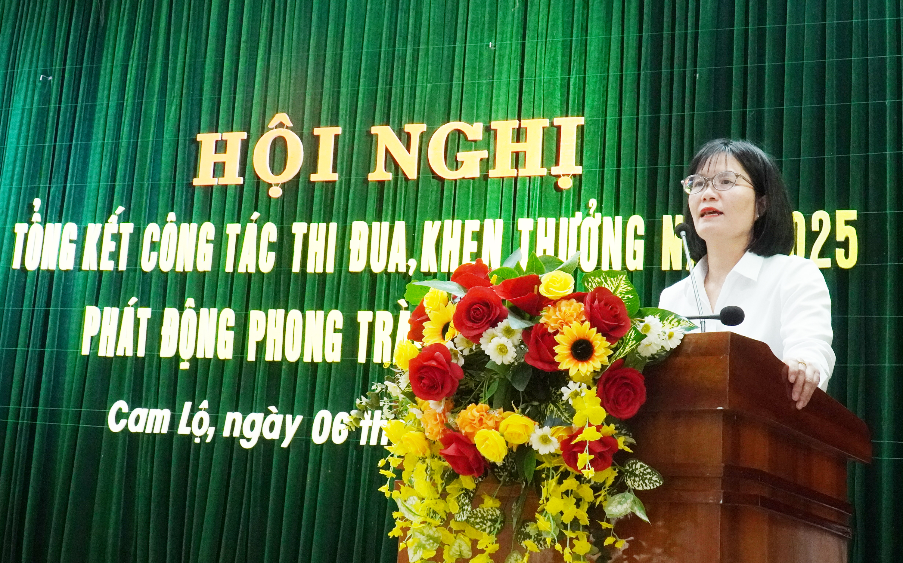 Phát biểu chỉ đạo tại hội nghị, đồng chí Nguyễn Thị Hoàng Oanh, Phó Bí thư Thường trực Đảng ủy xã ghi nhận và biểu dương những kết quả đạt được trong phong trào thi đua yêu nước năm 2025. Đồng chí đề nghị trong thời gian tới, xã Cam Lộ cần tiếp tục đẩy mạnh tuyên truyền các chủ trương của Đảng, chính sách, pháp luật của Nhà nước về thi đua, khen thưởng; triển khai hiệu quả các phong trào thi đua gắn với nhiệm vụ chính trị, cải cách hành chính, chuyển đổi số nâng cao chất lượng đội ngũ cán bộ, công chức; xây dựng nền hành chính phục vụ, liêm chính, chuyên nghiệp, kỷ cương, trách nhiệm. Đồng thời, phát huy vai trò của Mặt trận Tổ quốc và các đoàn thể, đổi mới công tác khen thưởng để tạo động lực thúc đẩy địa phương phát triển nhanh và bền vững.