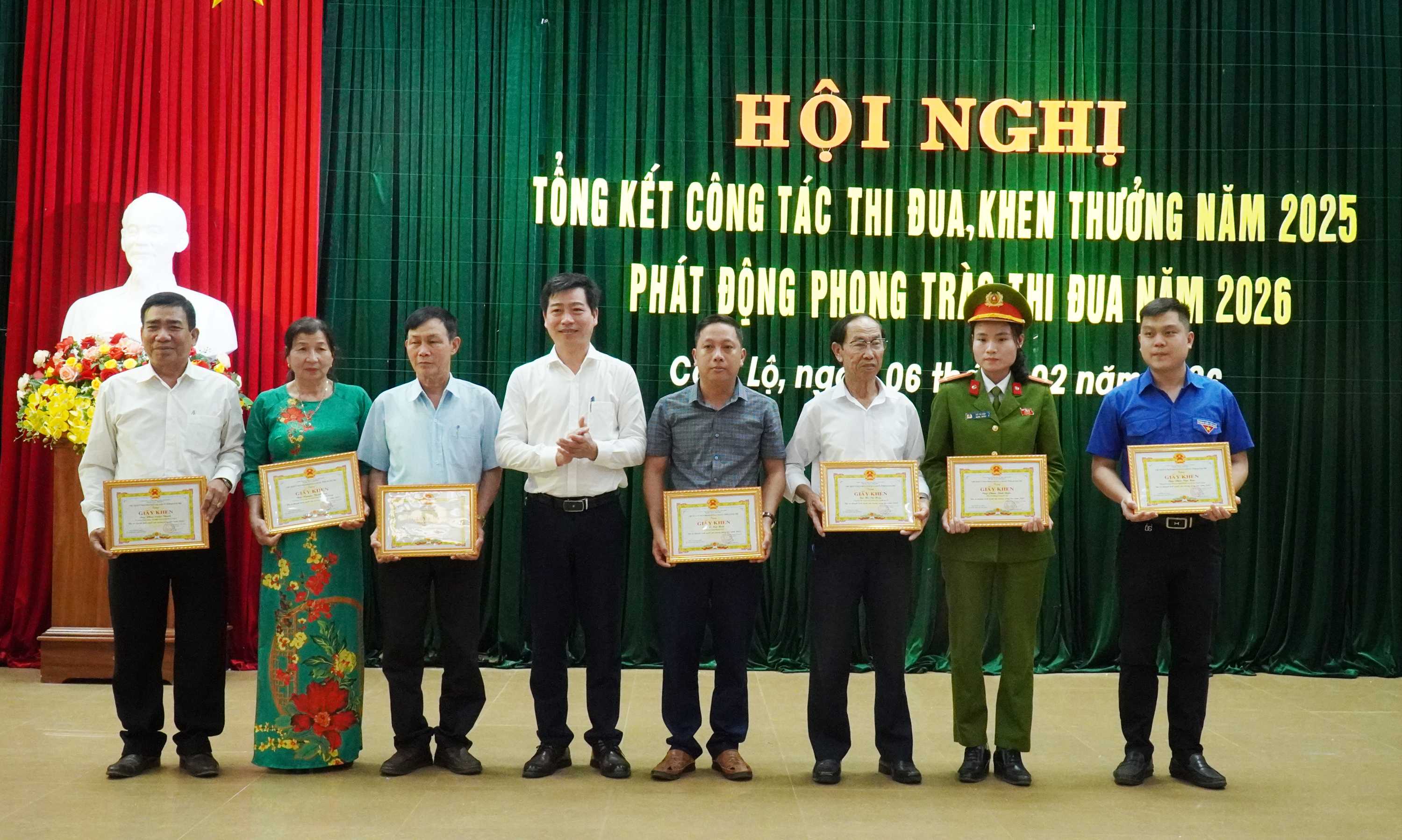 Lãnh đạo xã trao tặng danh hiệu “Chiến sĩ thi đua cơ sở” cho các cá nhân có thành tích xuất sắc trong năm 2025.