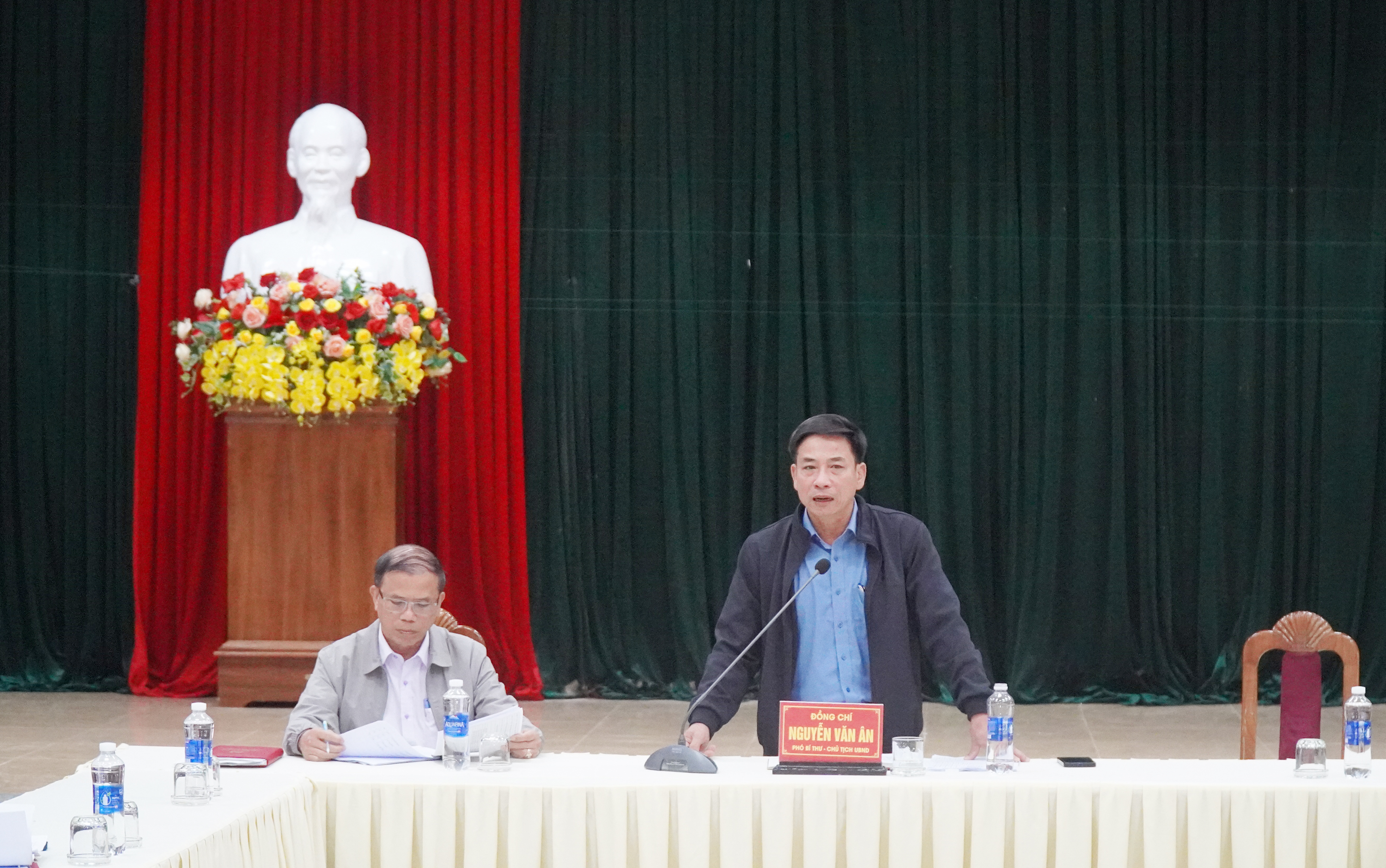 Đồng chí Nguyễn Văn Ân, Phó Bí thư Đảng ủy, Chủ tịch UBND xã chủ trì cuộc họp