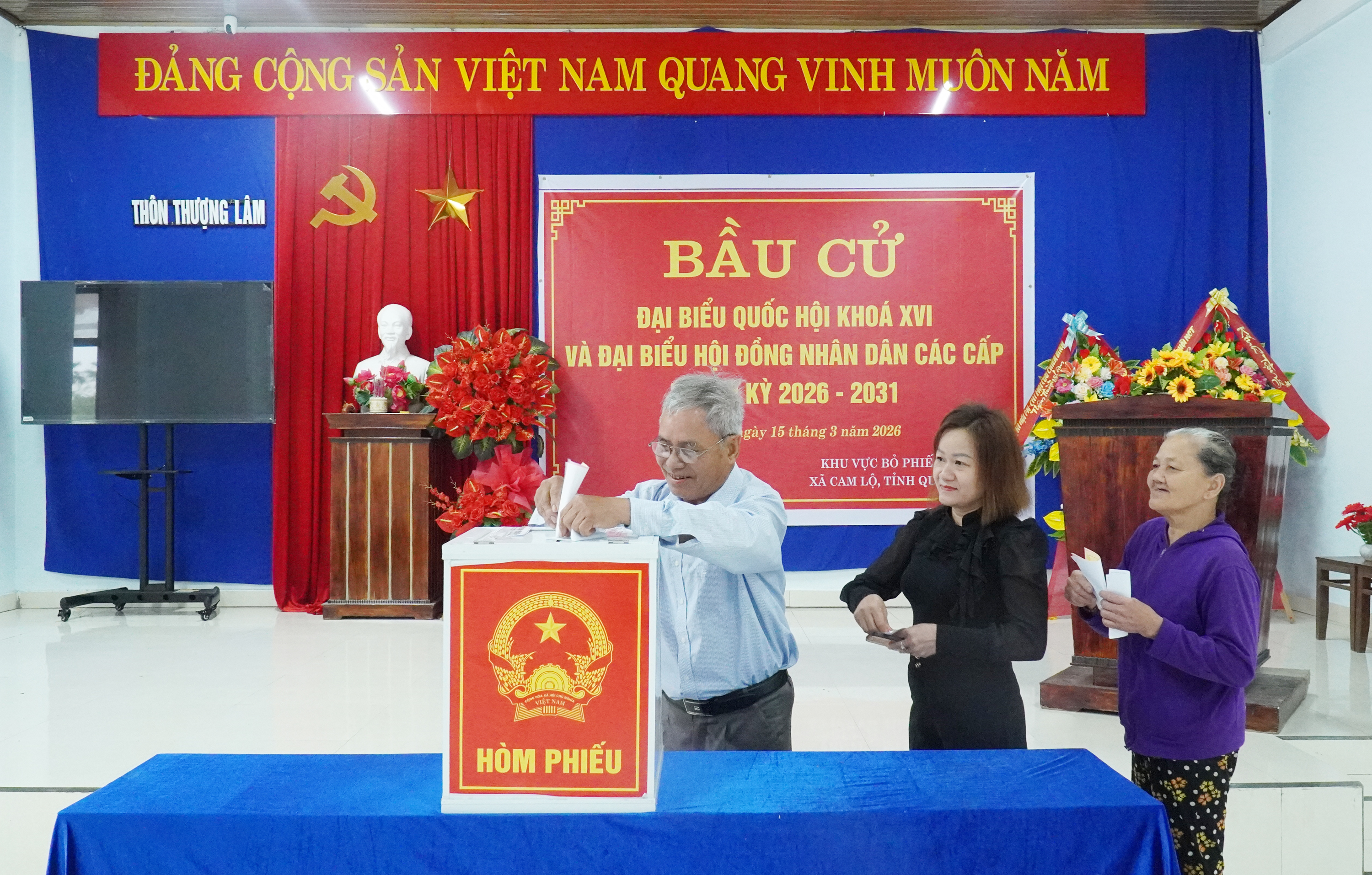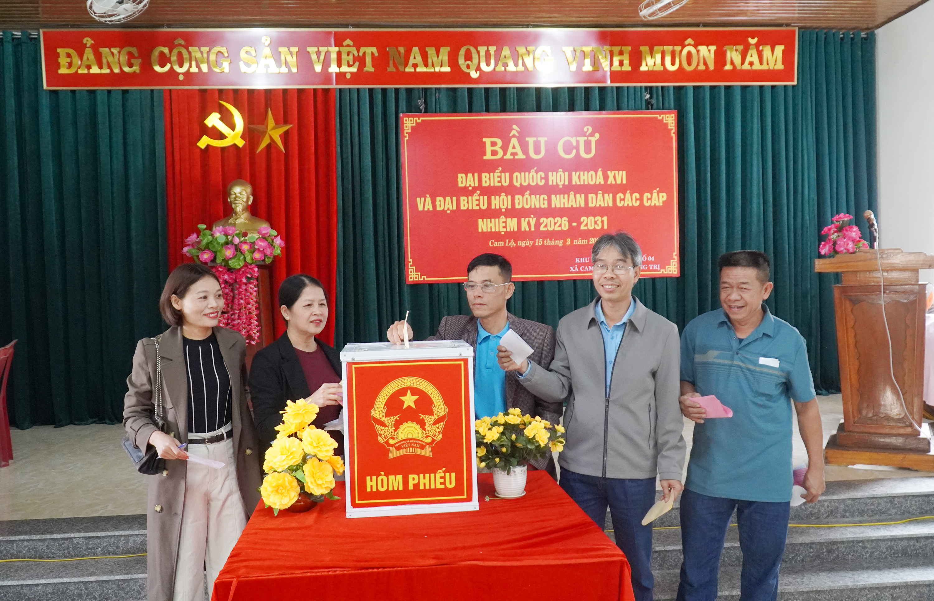 Đúng 7 giờ sáng, lễ khai mạc bầu cử được tổ chức đồng loạt tại 18/18 khu vực bỏ phiếu trên địa bàn xã. Không khí tại các điểm bỏ phiếu trên địa bàn xã diễn ra trang nghiêm, phấn khởi với sự tham gia của các đồng chí lãnh đạo xã cùng đông đảo cử tri và đại diện các tổ chức chính trị - xã hội ở địa phương. Đồng chí Đào Mạnh Hùng, UVBTV Tỉnh ủy, Phó Chủ tịch Thường trực Ủy ban MTTQ Việt Nam tỉnh Quảng Trị tham dự lễ khai mạc và bỏ lá phiếu đầu tiên tại khu vực bỏ phiếu số 4, xã Cam Lộ.