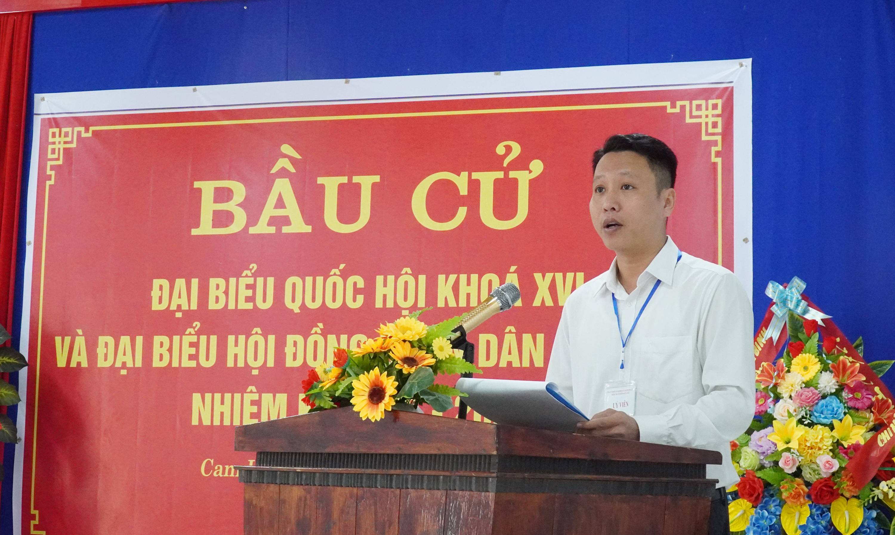 Đồng chí Nguyễn Văn Ân, Phó Bí thư Đảng ủy, Chủ tịch UBND xã tham dự lễ khai mạc tại khu vực bỏ phiếu số 9