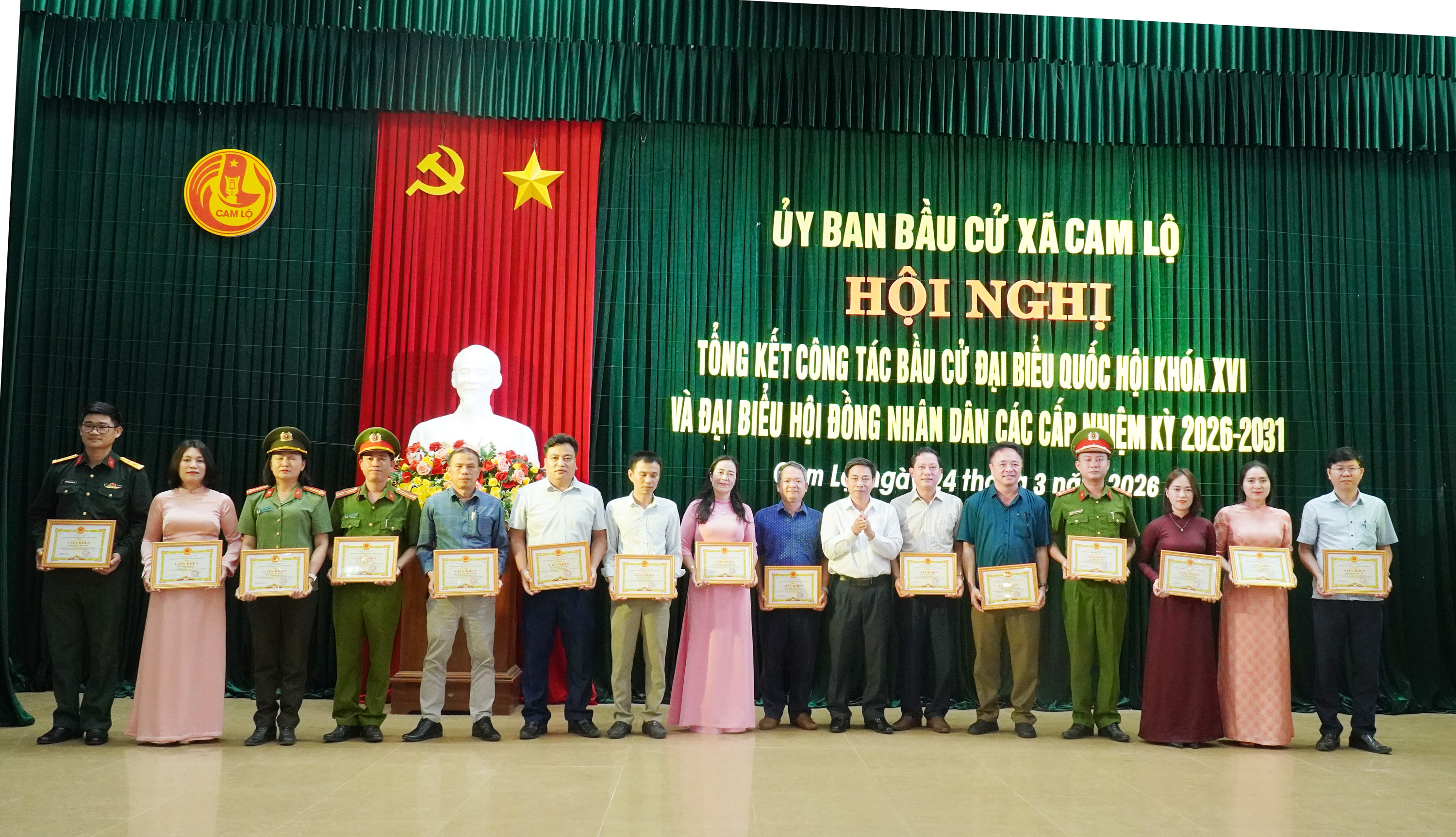 Nhân dịp này, xã Cam Lộ đã tổ chức khen thưởng cho các tập thể, cá nhân có thành tích xuất sắc trong công tác bầu cử, qua đó ghi nhận và động viên kịp thời những đóng góp tích cực cho thành công chung của cuộc bầu cử.