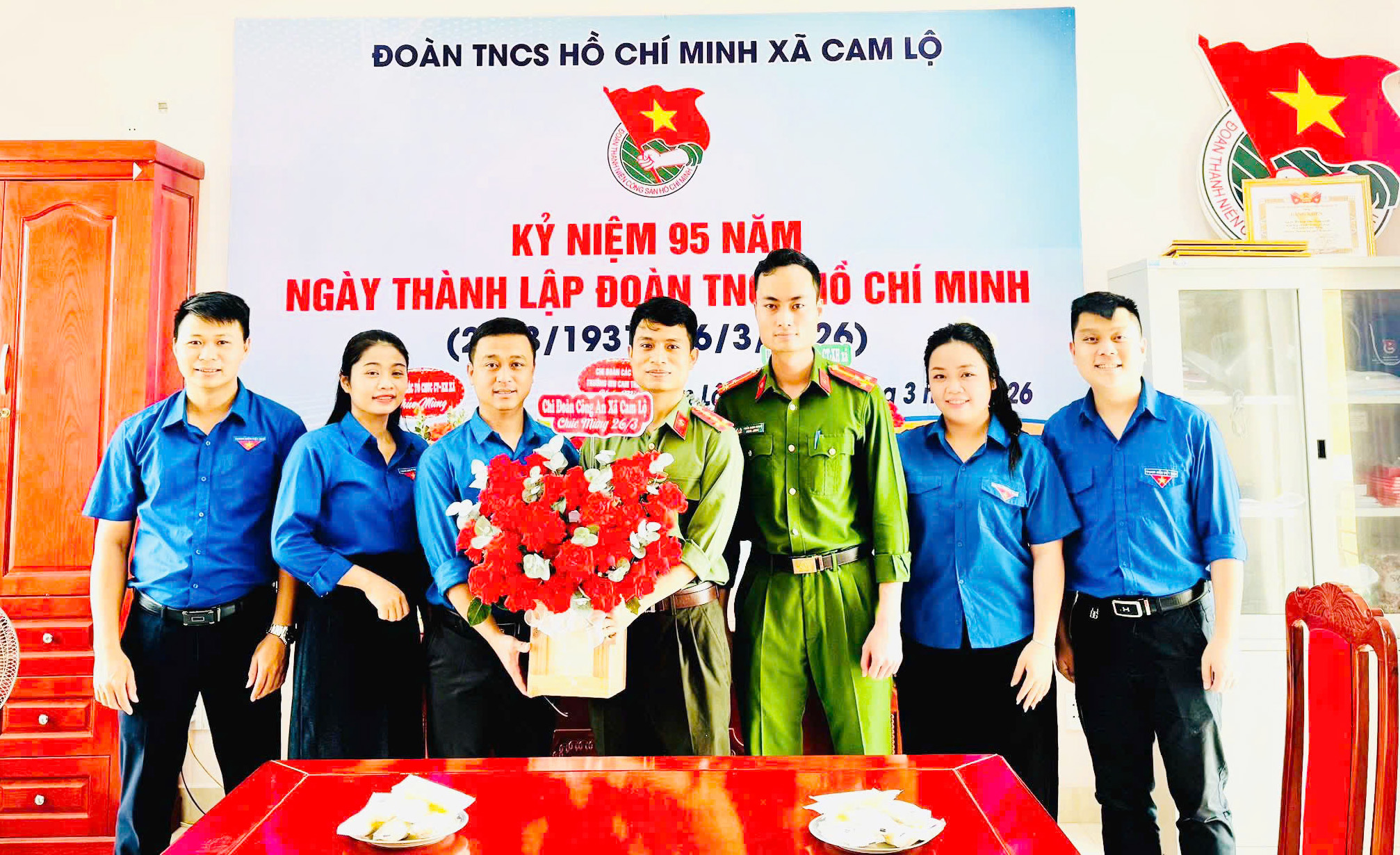 Nhân kỷ niệm 95 năm Ngày thành lập Đoàn Thanh niên Cộng sản Hồ Chí Minh (26/3/1931 – 26/3/2026), sáng 26/3, lãnh đạo Đảng ủy - HĐND - UBND - UBMTTQ Việt Nam xã Cam Lộ cùng đại diện các cơ quan, đơn vị trên địa bàn đã đến tặng hoa, chúc mừng Đoàn Thanh niên Cộng sản Hồ Chí Minh xã.