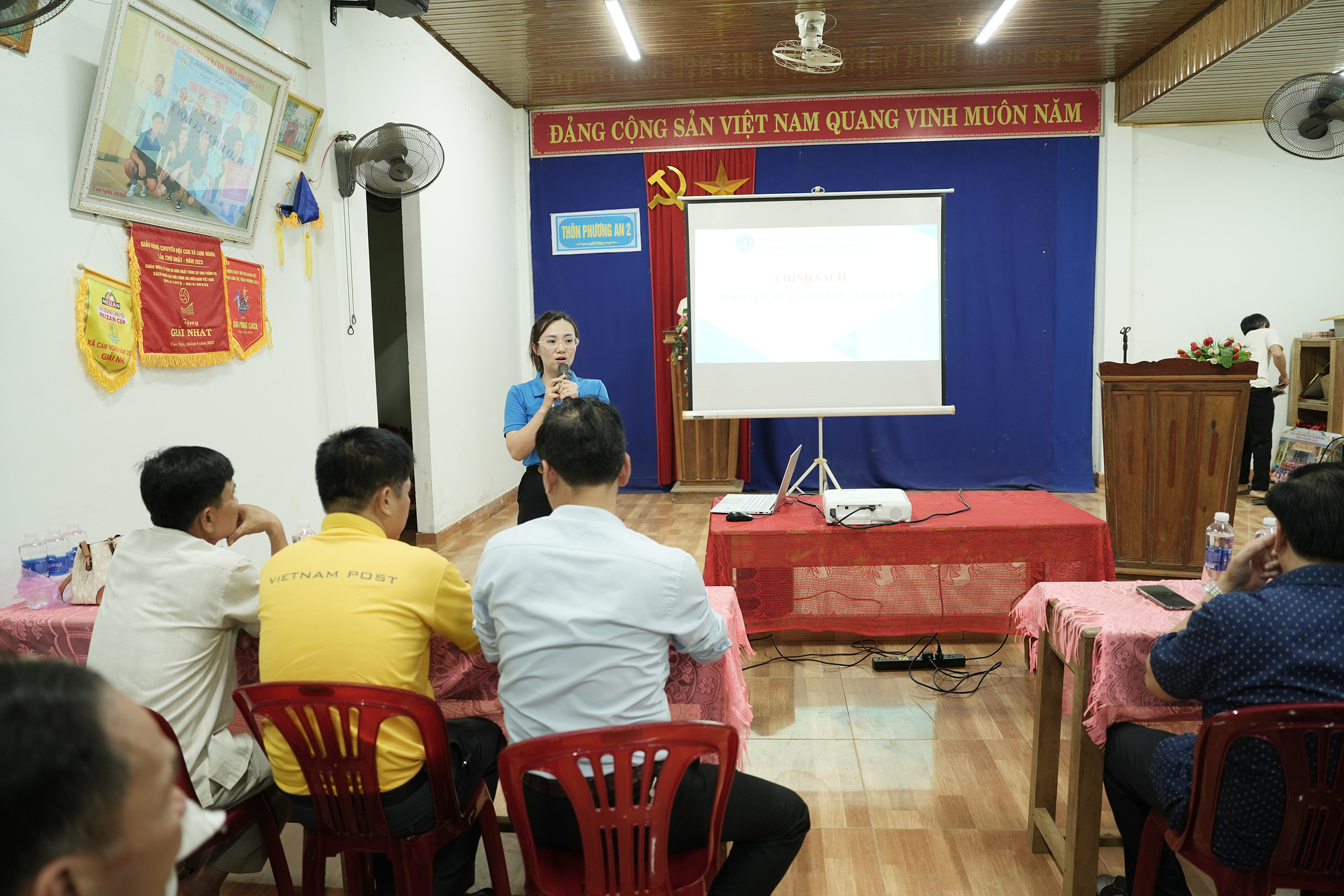 Tối qua 16/4, tại thôn Phương An 2, xã Cam Lộ, BHXH cơ sở Đông Hà phối hợp với UBND xã Cam Lộ tổ chức chuỗi hoạt động tuyên truyền, vận động người dân trên địa bàn tham gia BHXH, BHYT tự nguyện. Đến dự có đồng chí Dương Thị Thương, UVBTV Đảng ủy, Chủ tịch Ủy ban MTTQ Việt Nam xã; đồng chí Nguyễn Tiến Long, Phó Chủ tịch UBND xã.