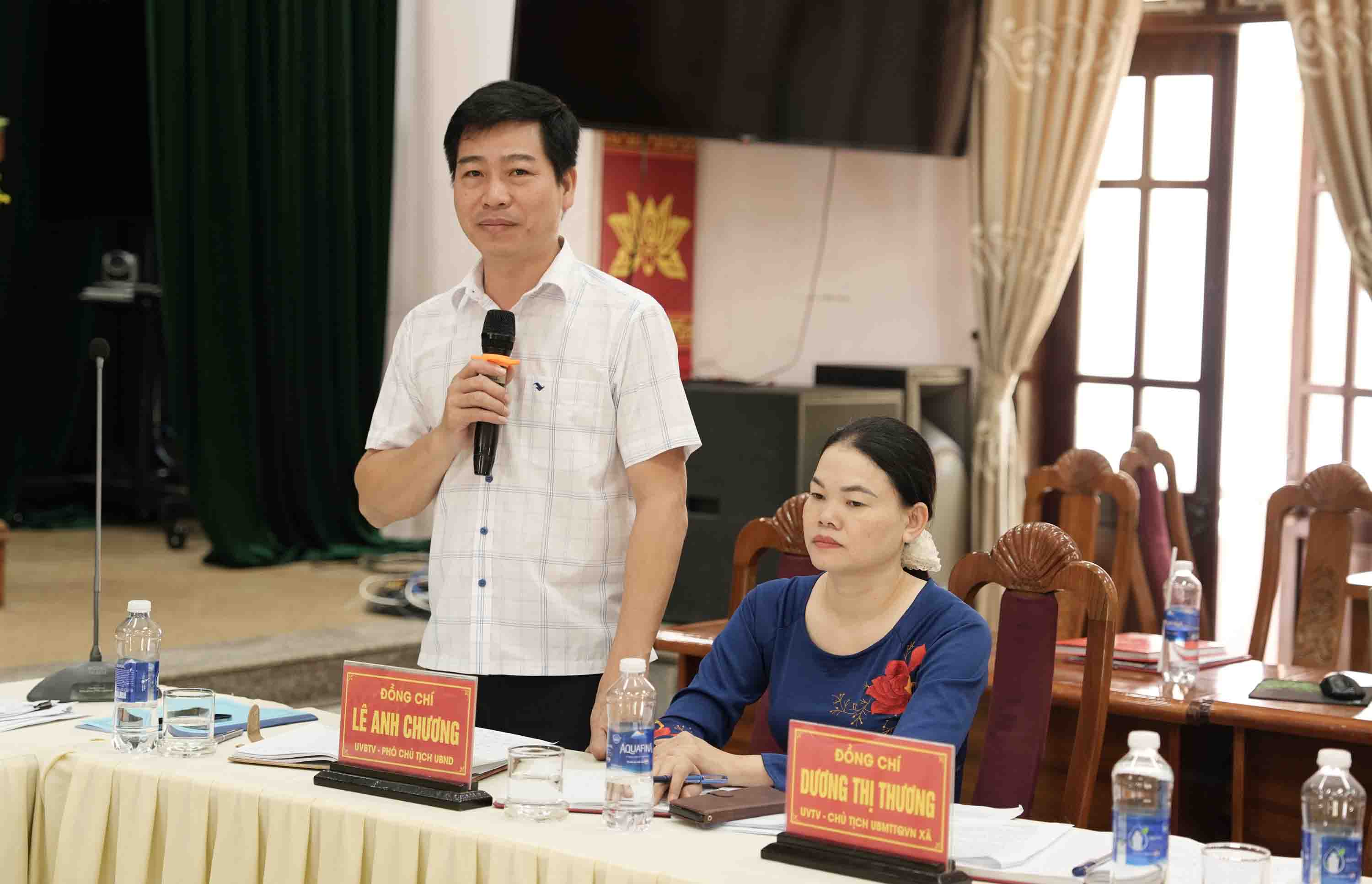 Đồng chí Nguyễn Văn Ân, Phó Bí thư Đảng ủy, Chủ tịch UBND xã nêu một số kiến nghị, đề xuất với đoàn công tác