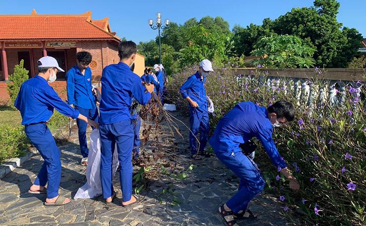 Tuổi trẻ xã Thanh An tham gia làm vệ sinh khuôn viên Nhà tưởng niệm Nhà thơ Chế Lan Viên