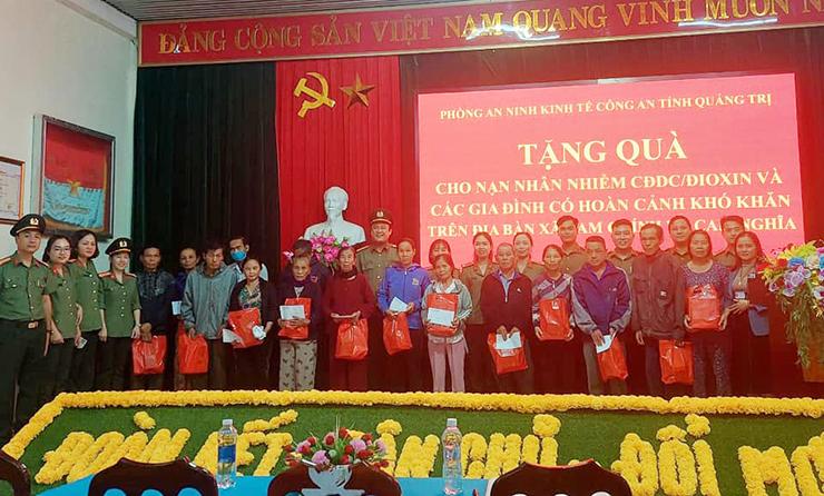 Phòng An ninh – Kinh tế, Công an tỉnh Quảng Trị vừa phối hợp với Hội Chữ thập đỏ xã Cam Chính và Cam Nghĩa tổ chức trao quà cho các nạn nhân bị nhiễm chất chất độc da cam/dioxin, người khuyết tật và các gia đình có hoàn cảnh khó khăn trên địa bàn.